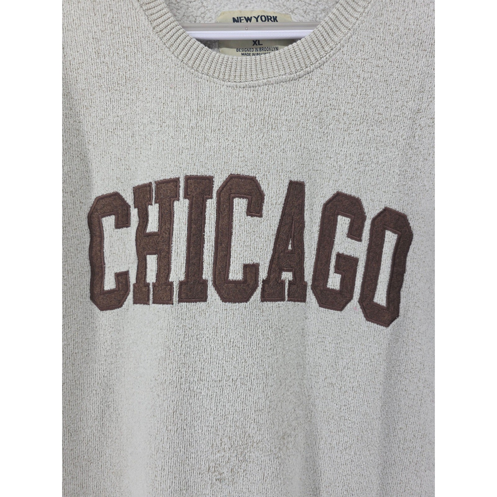 как выглядит New York Popular Sz XL Sweatshirt Chicago Embroidered Pullover Cotton фото