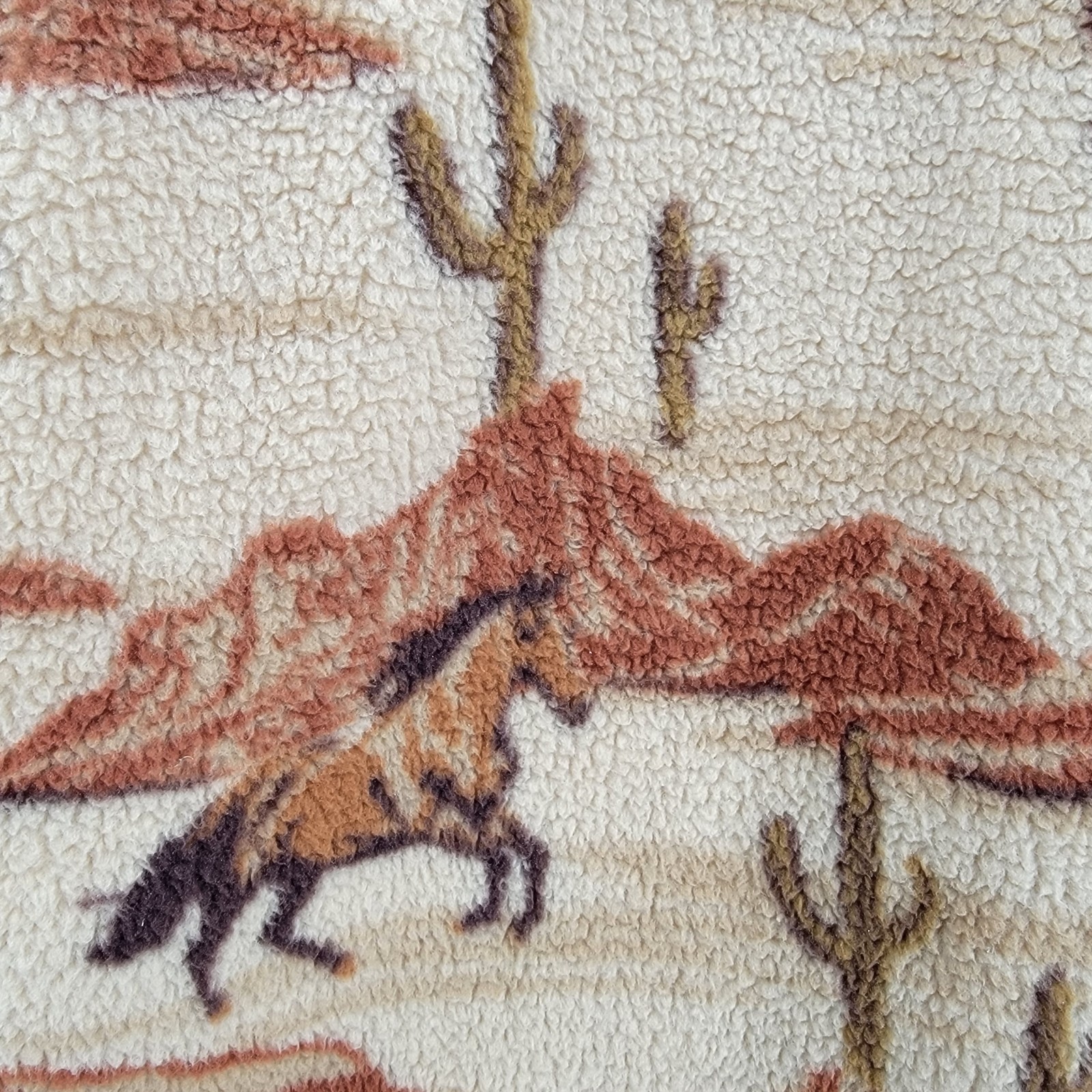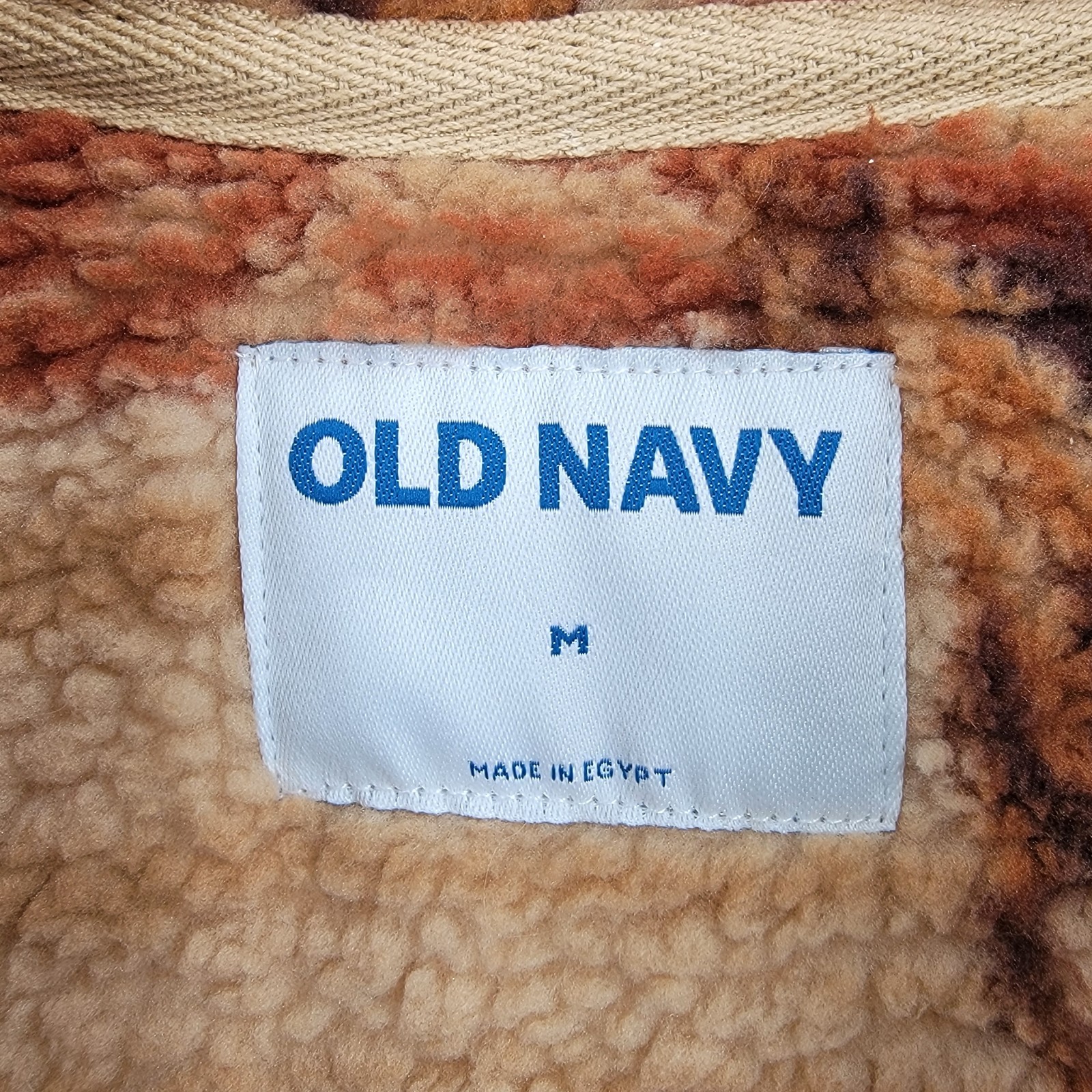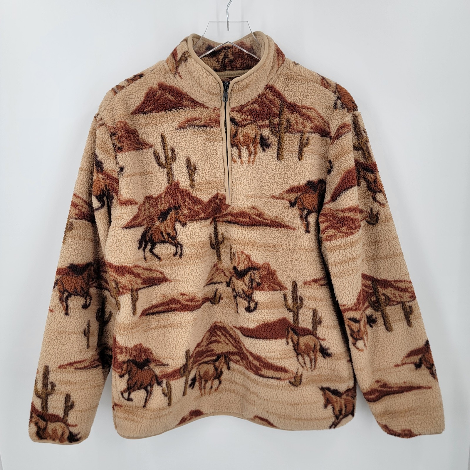 Old Navy Horse Print Sherpa Quarter Zip Pullover Mens Medium Tan Brown Pockets