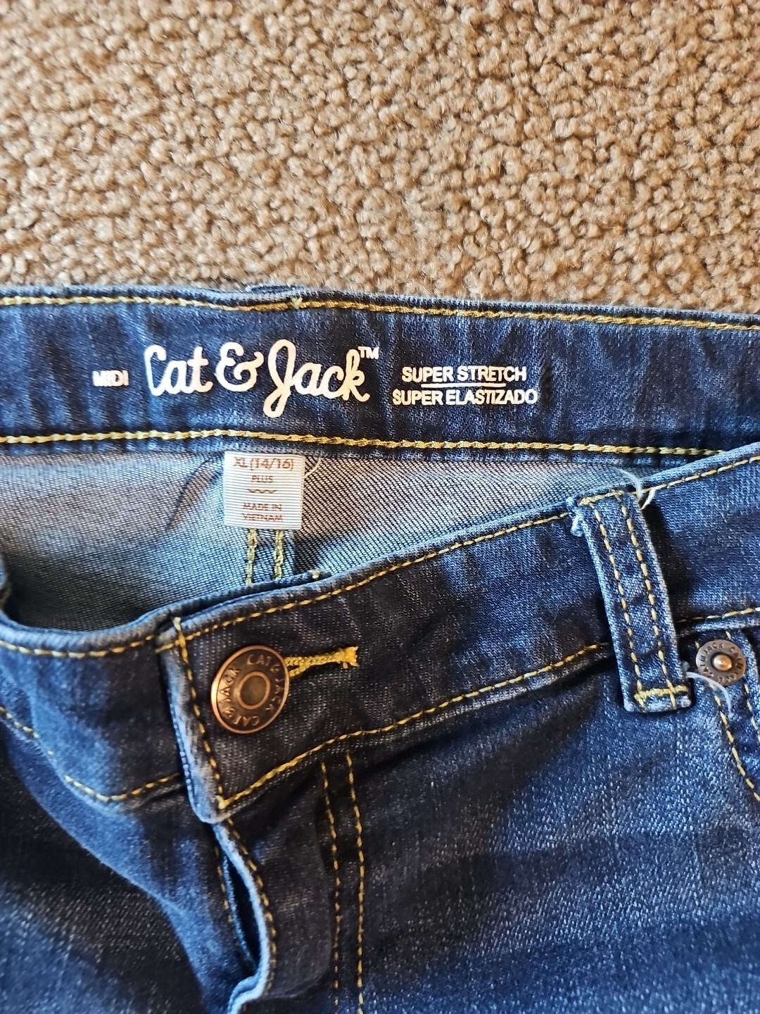 Cat And Jack MIDI women Jean Shorts Super Stretch Size XL 14/16 Dark Wash fringe