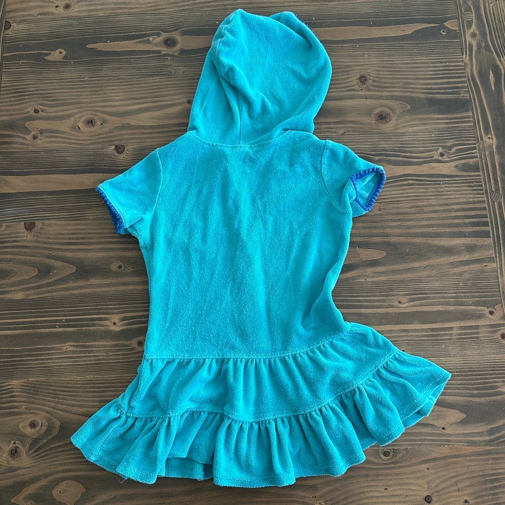 Cat Jack Teal Hooded Swim Coverup Girls XS 4/5 Terry Cloth Zip Pool Beach cs