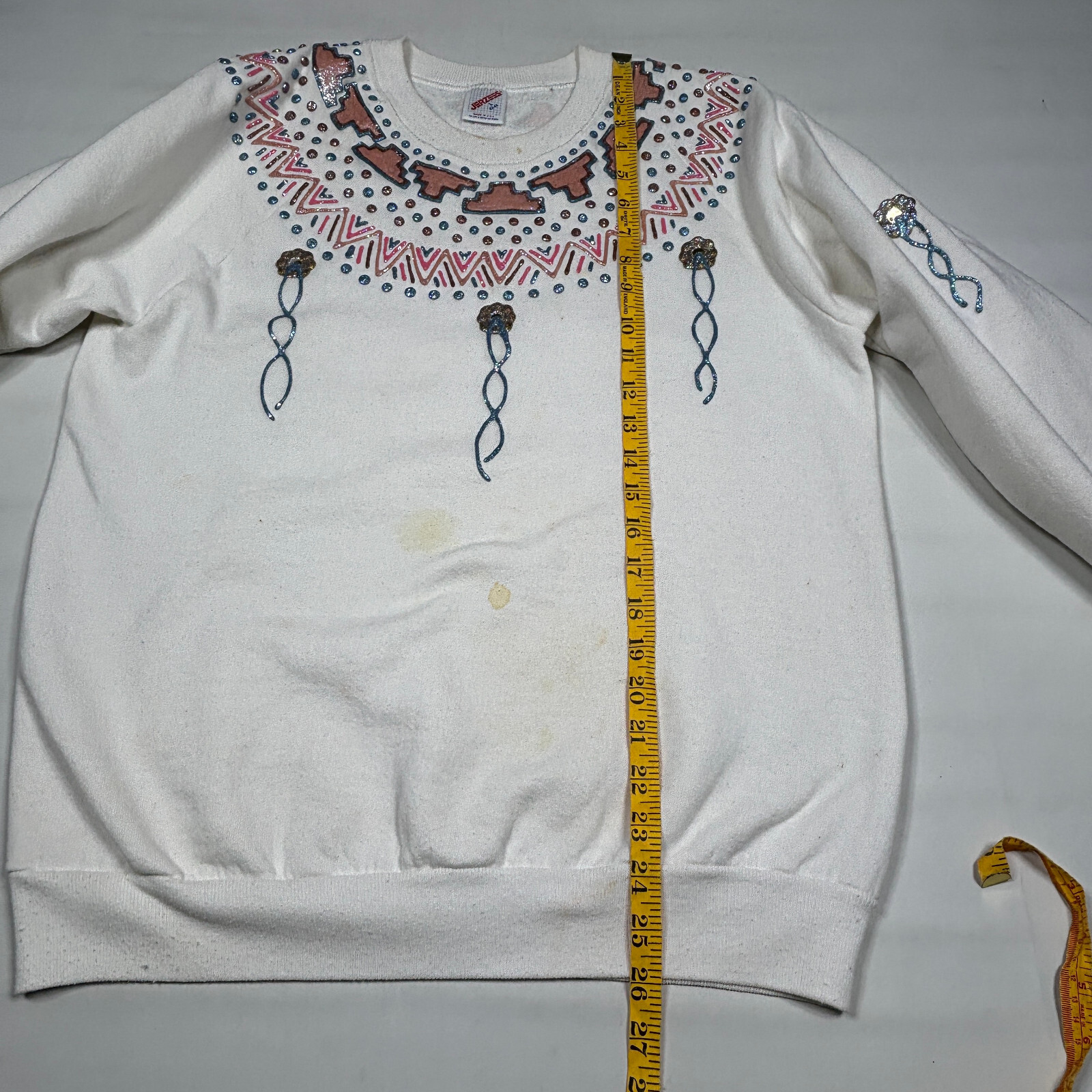 как выглядит VTG Glittered Puff Paint Southwestern Design Sweatshirt Made in USA Womens Large фото