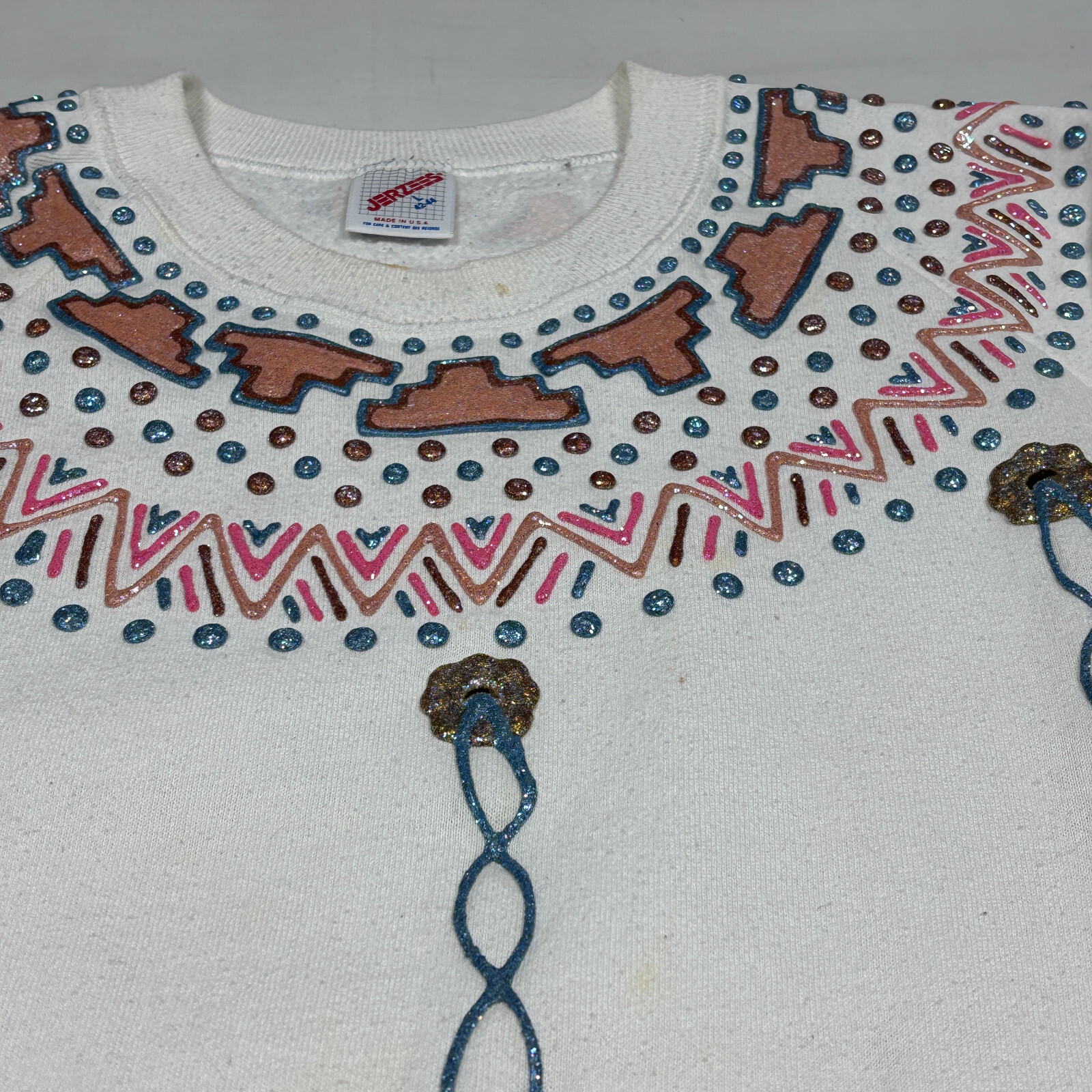 VTG Glittered Puff Paint Southwestern Design Sweatshirt Made in USA Womens Large