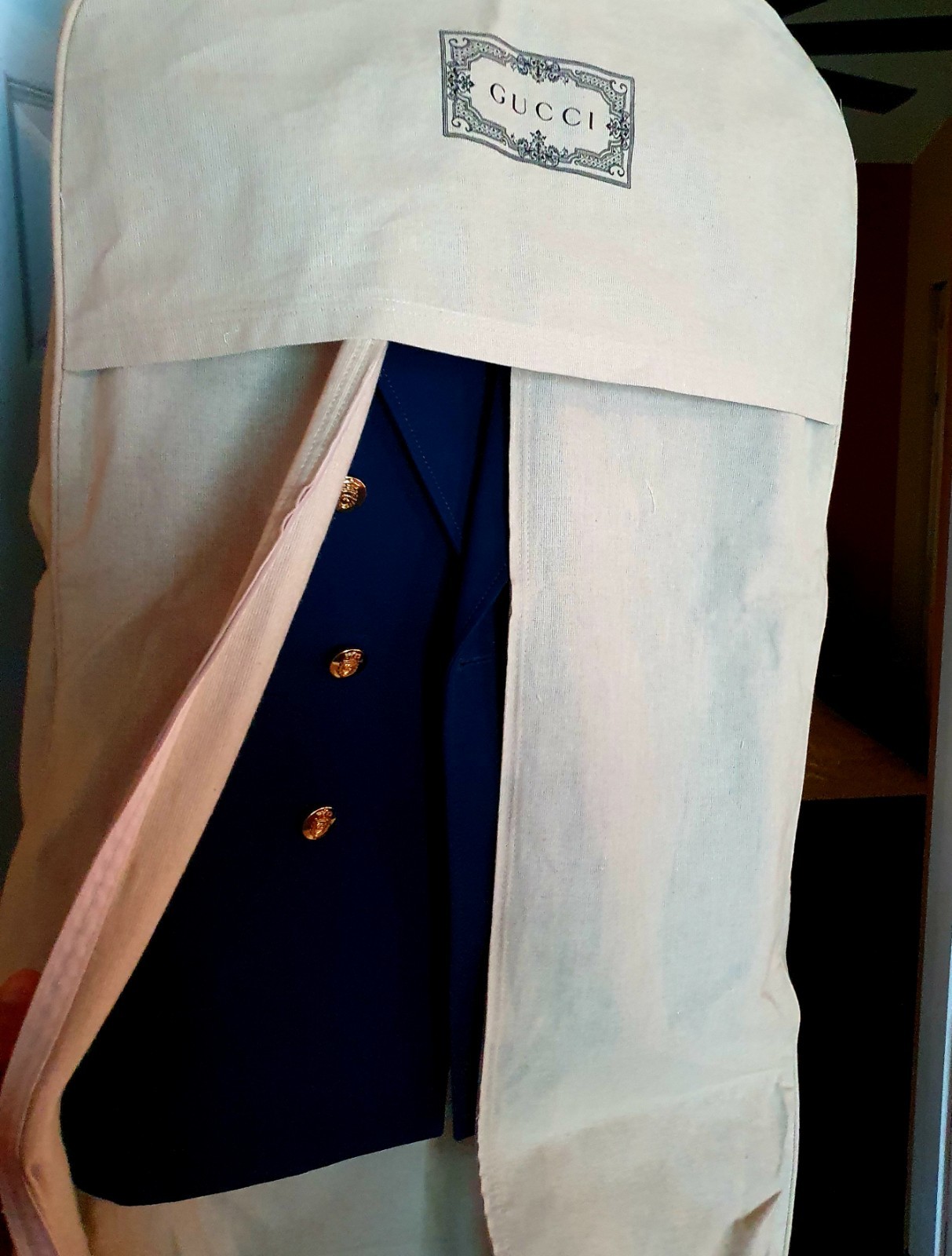 как выглядит GUCCI Navy Blue Cotton Blazer Jacket New Authentic фото