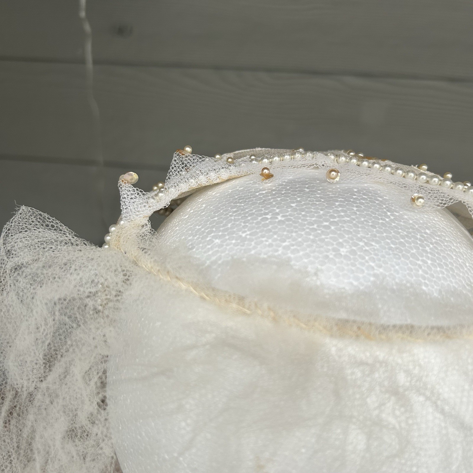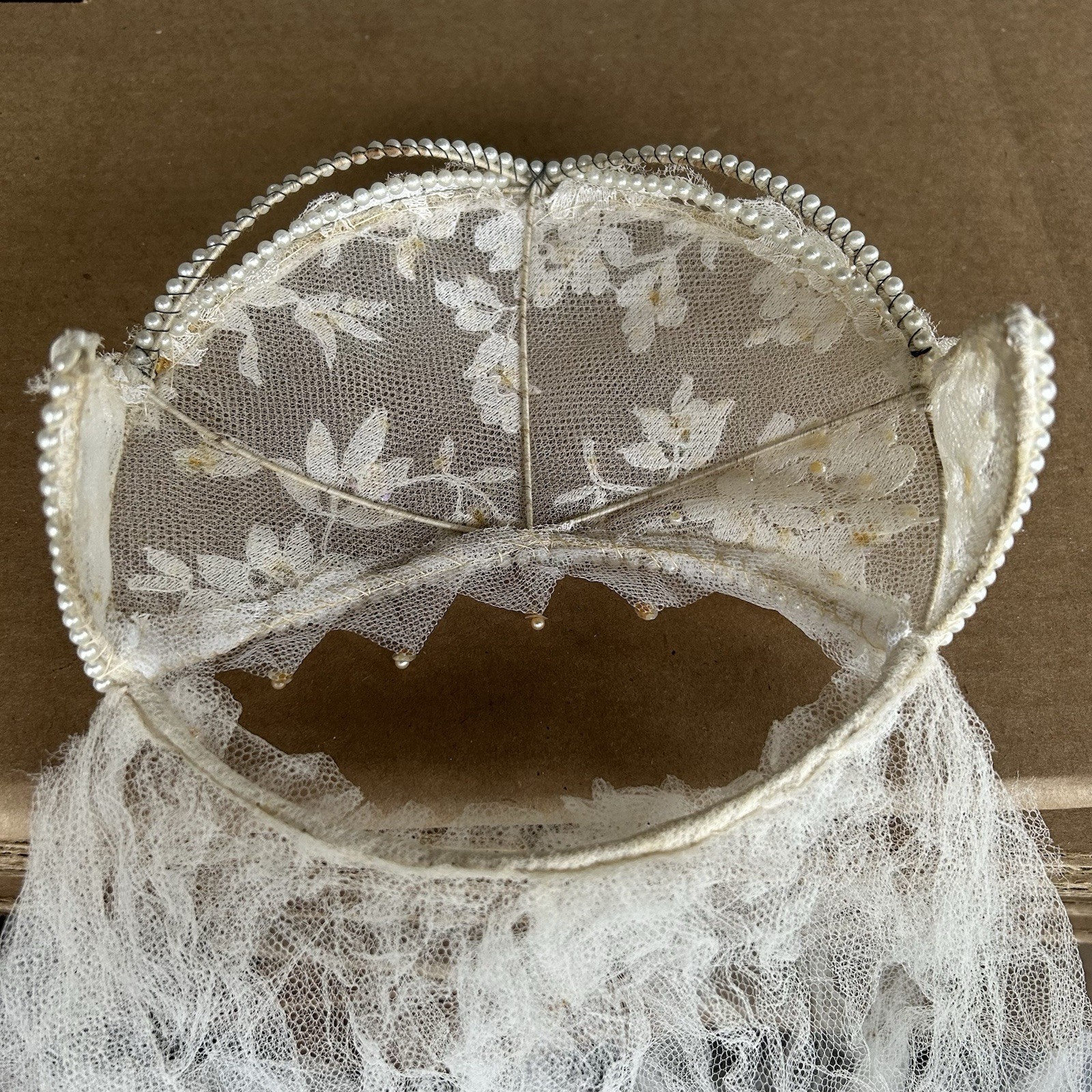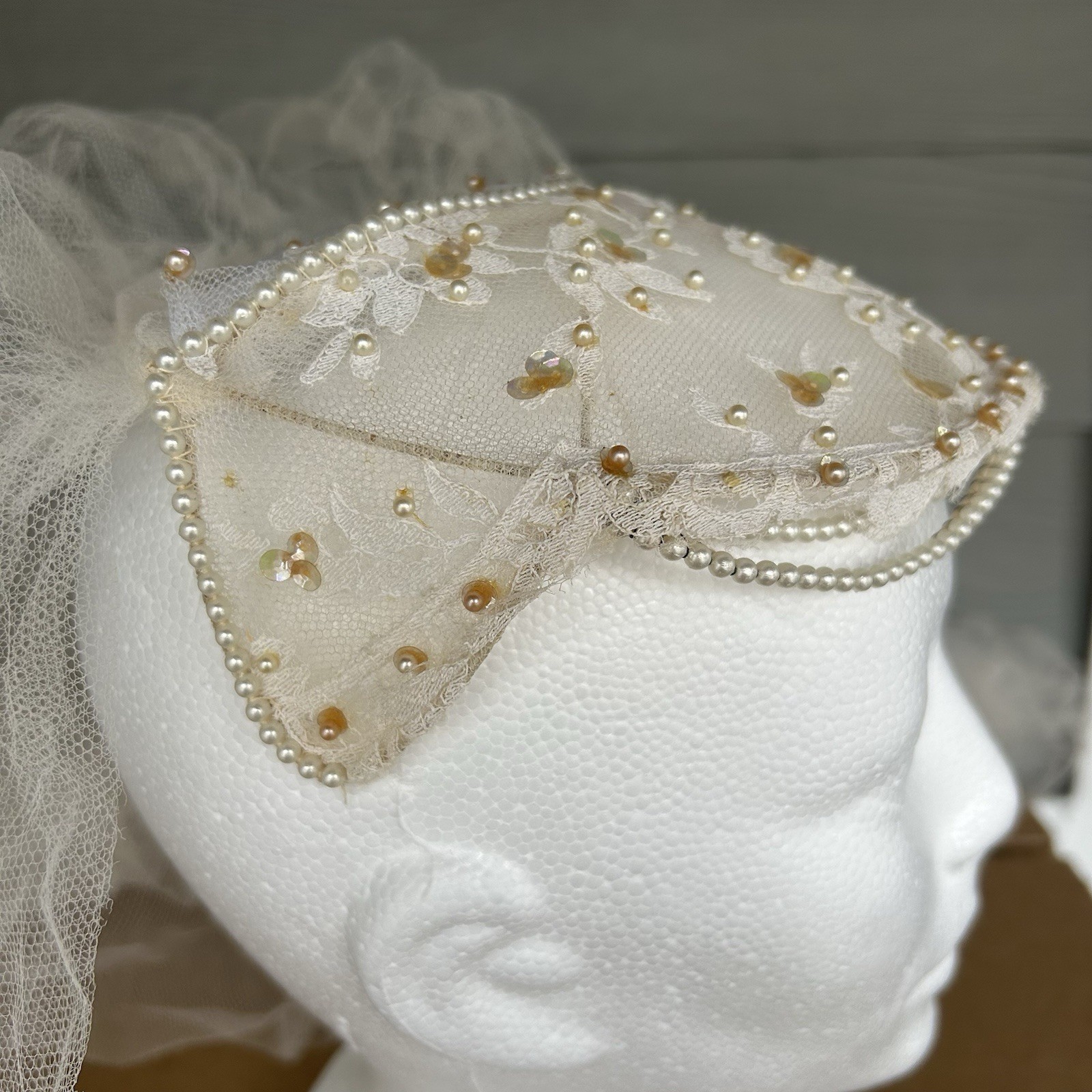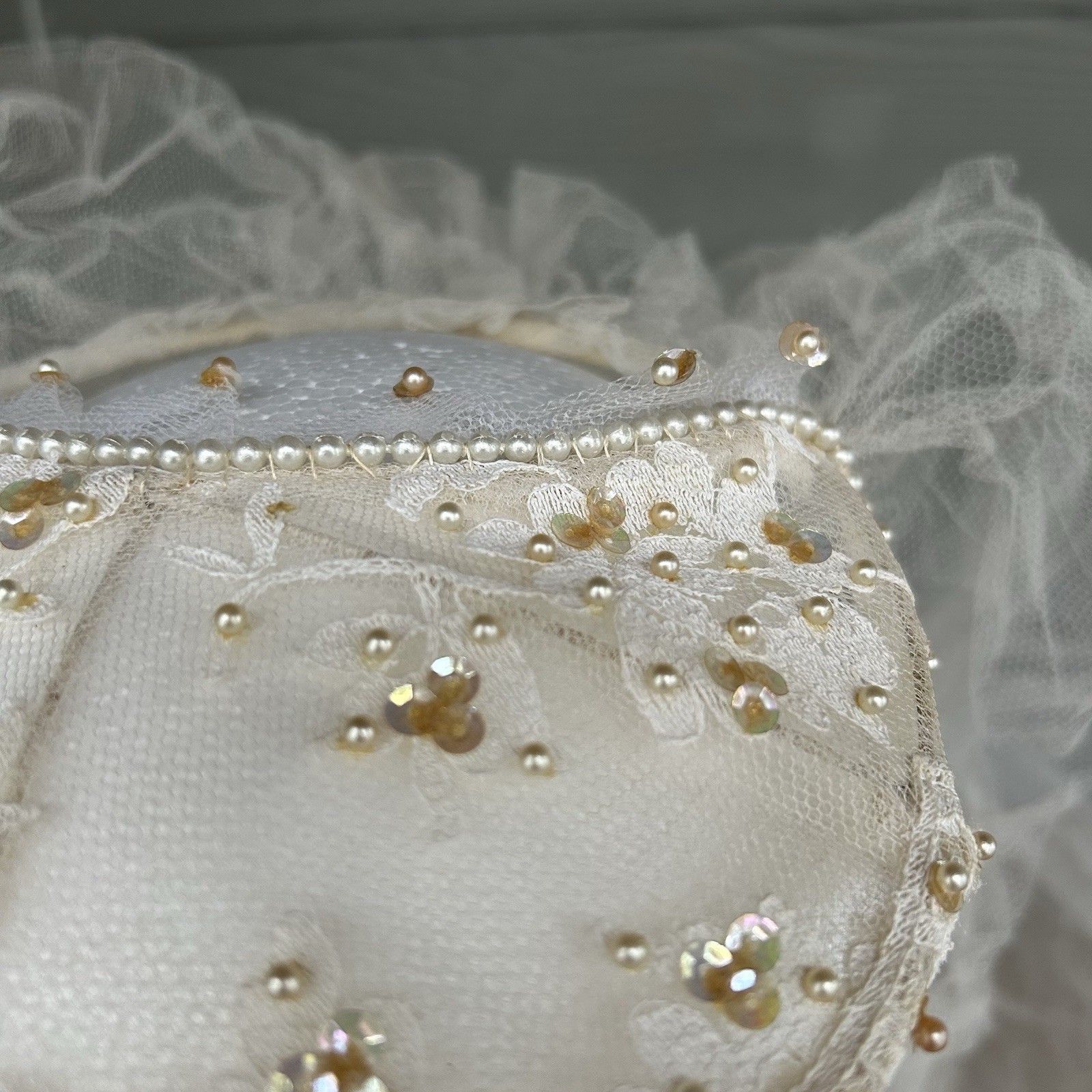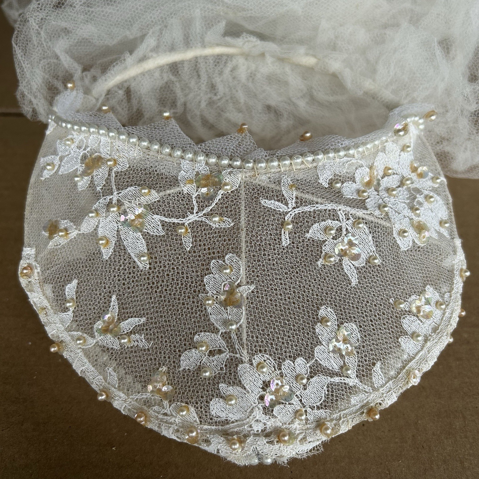 Vintage Bridal Juliet Cap Headpiece Veil Beads Sequins Seed Pearls Netting READ
