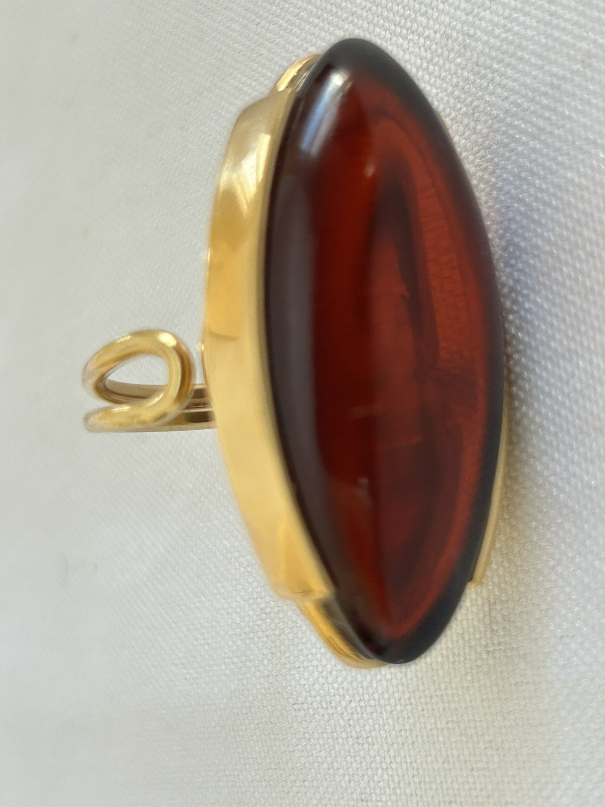 как выглядит CHERRY BALTIC AMBER RING 925 Sterling Silver Baltic GOLD PLATED ADJUSTABLE Sz 7 фото