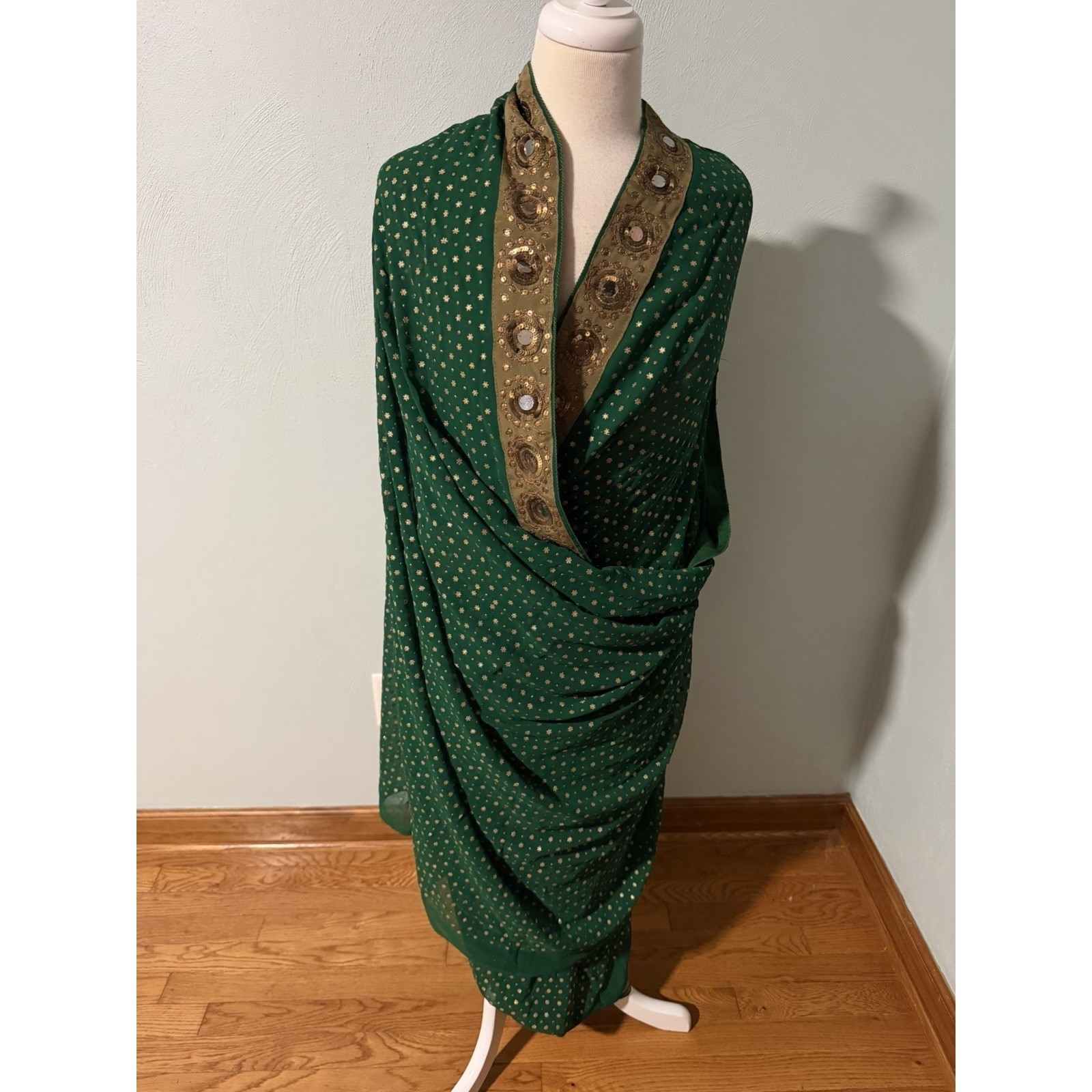 как выглядит Sheer Chiffon Indian Dupatta Shawl Sari Wrap Scarf Embellished Beaded Bollywood фото