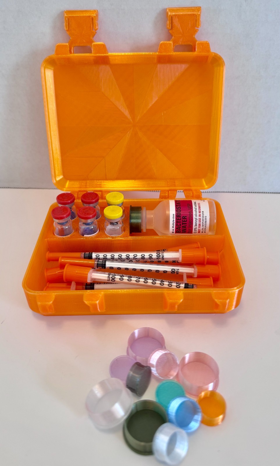 GLP, Peptide, Insulin, TRT, HRT 6 Vial Storage Case, 10 Vial Caps Orange Crush