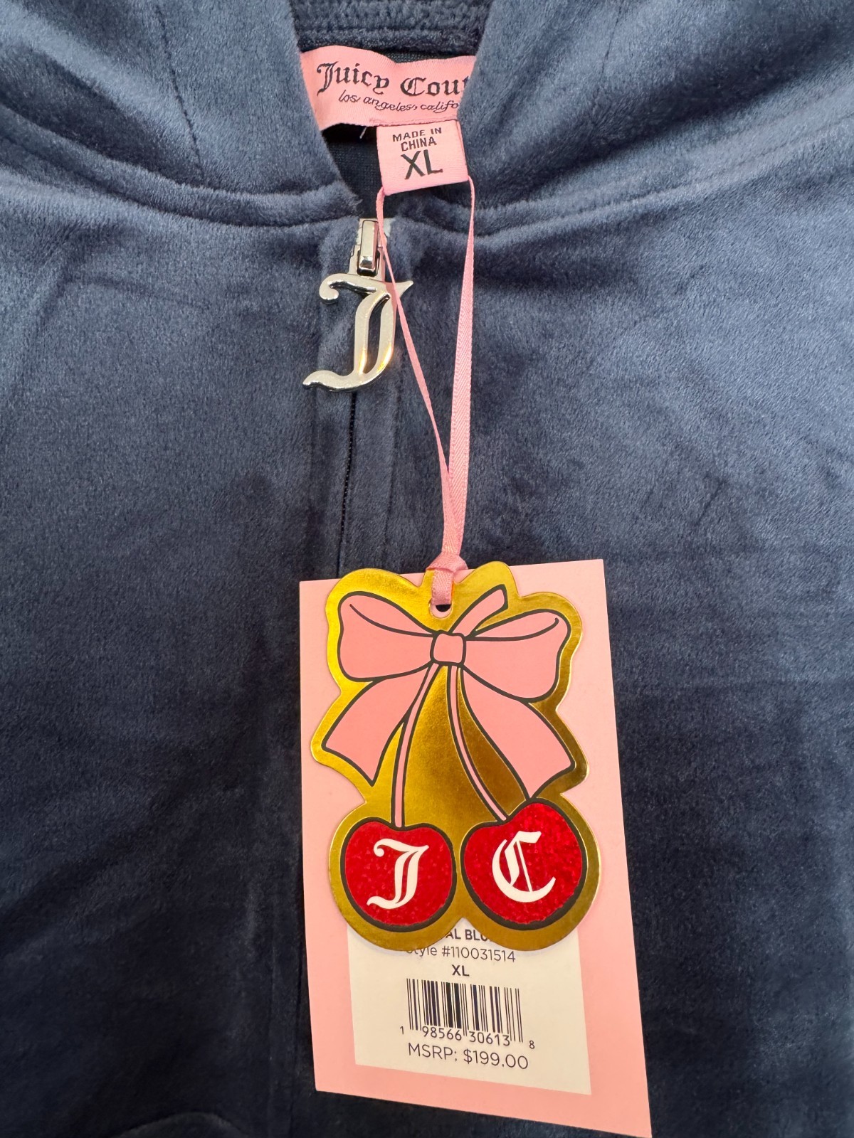 как выглядит JUICY COUTURE Velour OG Bling Tracksuit Hoodie Pant Set Regal Blue Medium M фото