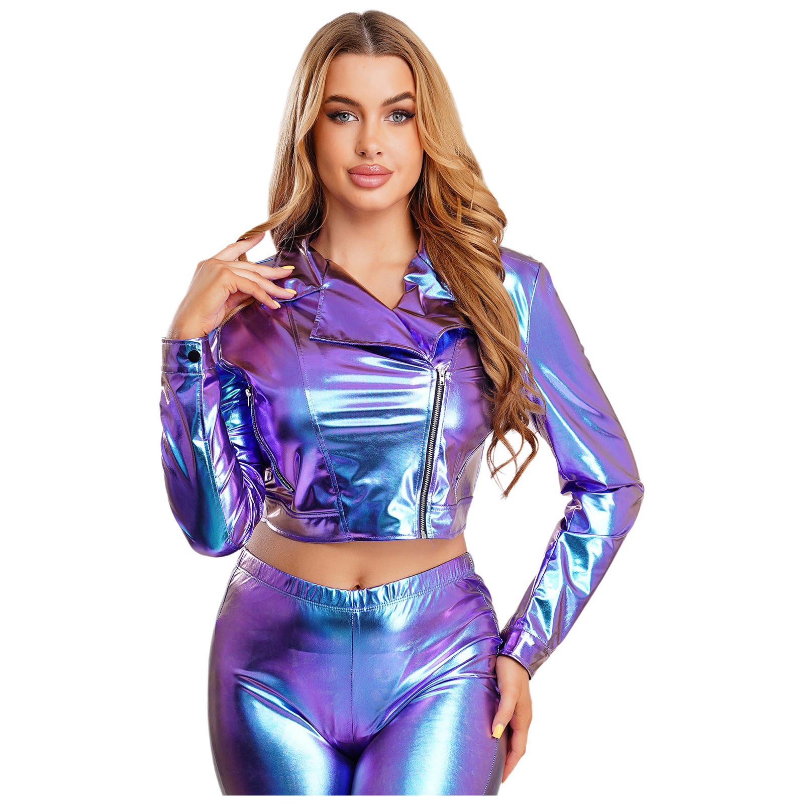 как выглядит Womens Outfits Dance Costumes Jackets Adult Metallic Shiny Party Tops Dress Up фото