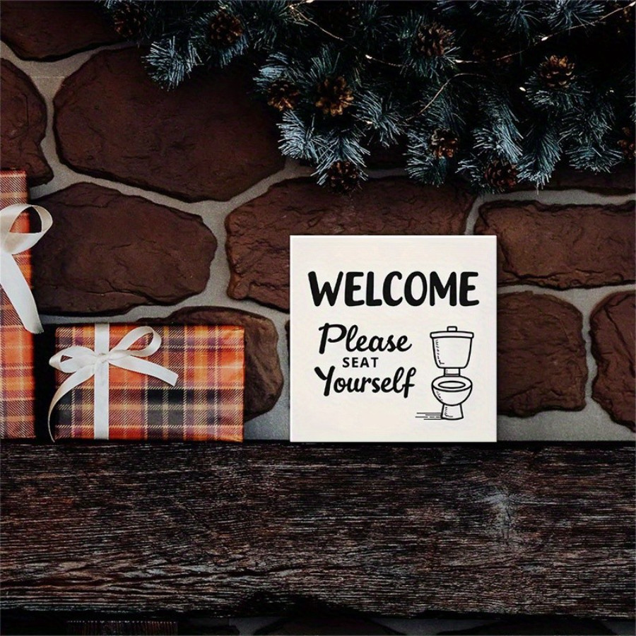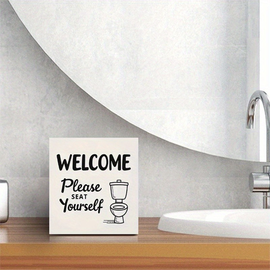 как выглядит 2D 1P Wooden Box Sign "Welcome Please Seat Youself" Funny Bathroom Decor 5x5 фото