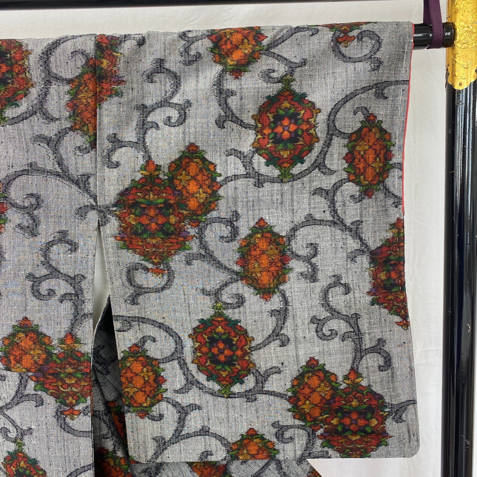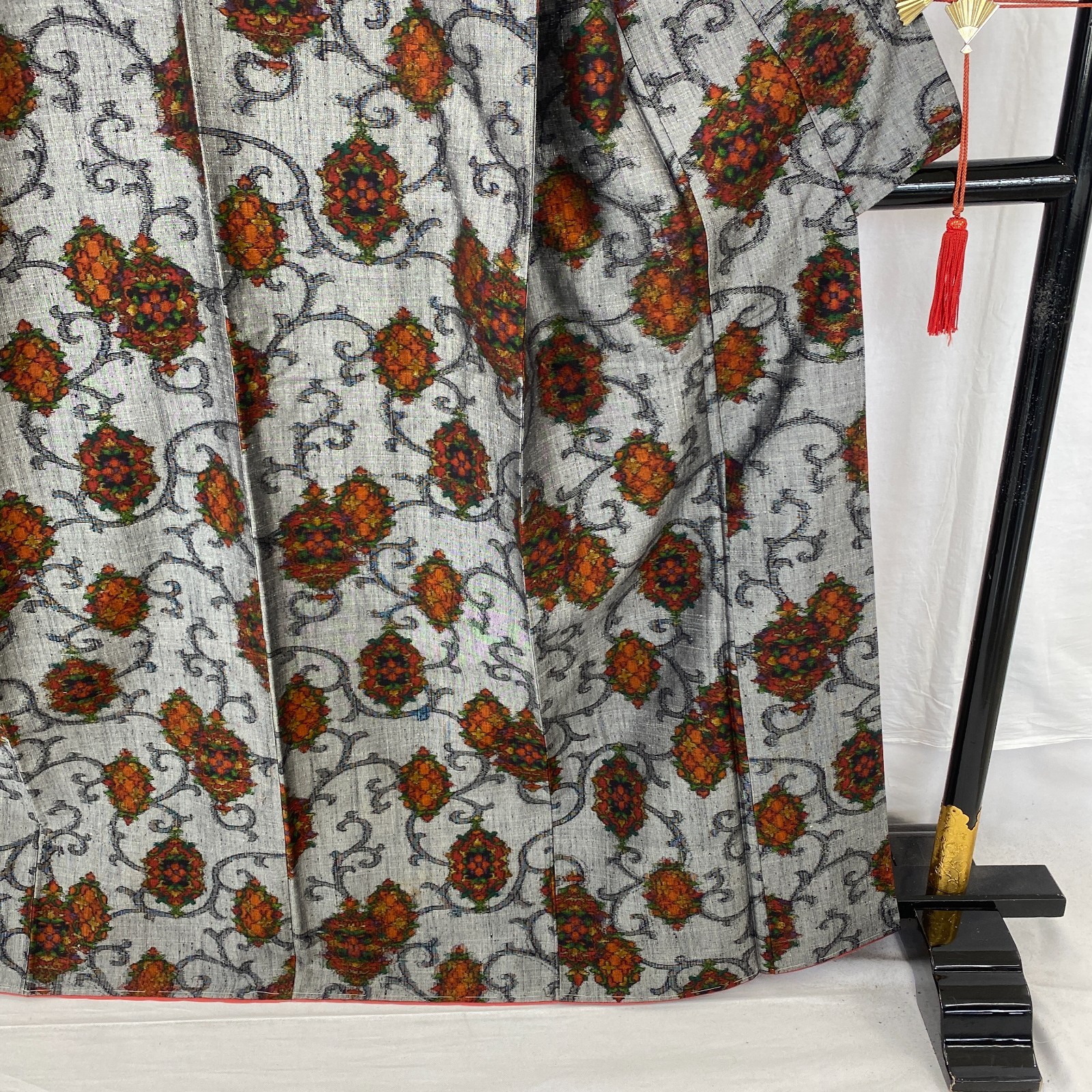 как выглядит Japanese Vintage Kimono Silk Gray Tumugi Traditional Authentic Length 64 in фото