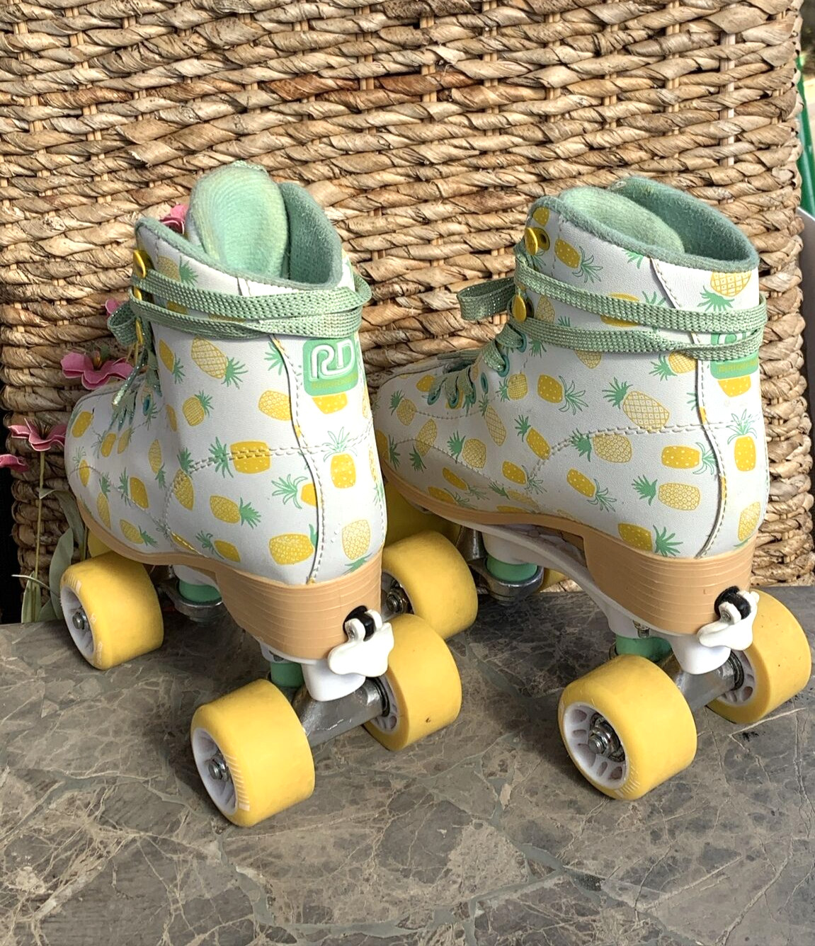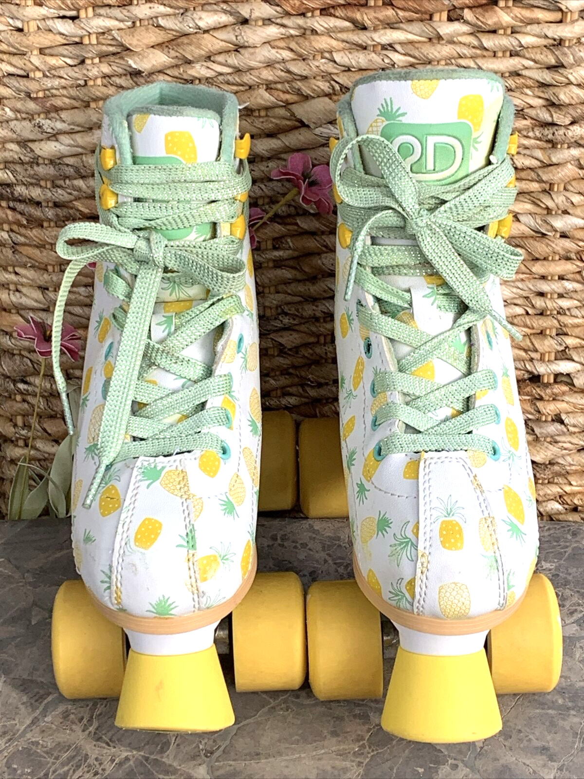 Roller Derby Candi Girl Lucy Adjustable Roller Skates sz 12-2 White Pineapples