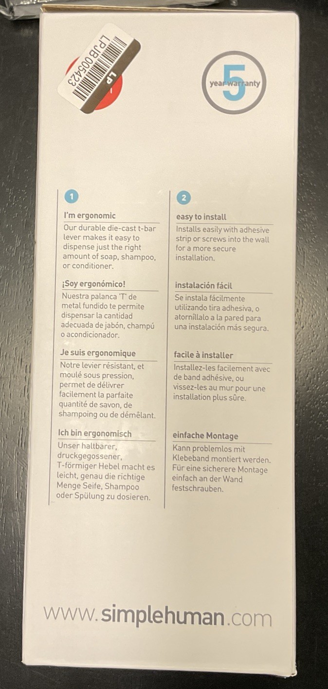 Simplehuman 15 Oz Double Wall Mount Shower Soap Dispenser Pump New In Box