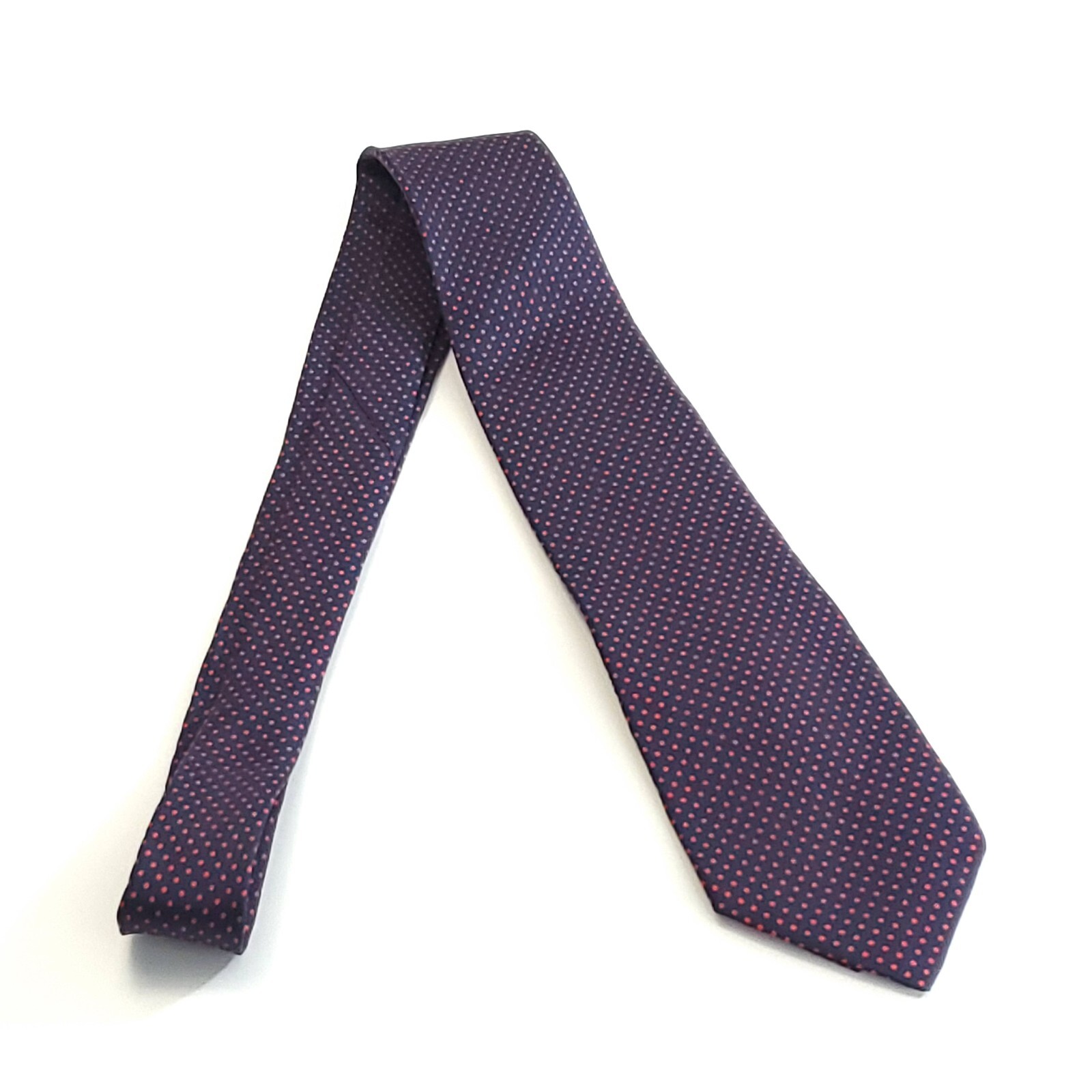 Stafford Silk Tie Blue Polka Dot Print Red Skinny