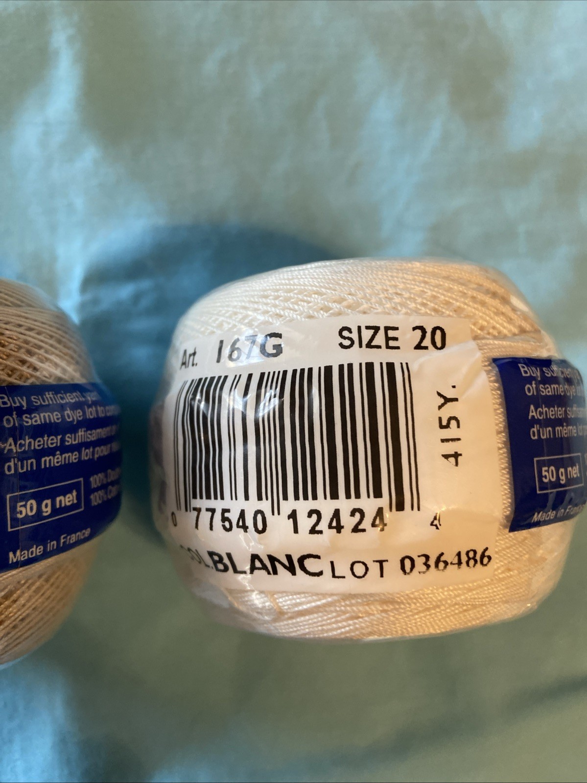как выглядит 2 DMC Cebelia Crochet 167G/A Cotton Size 30 20 Blanc/3033 фото