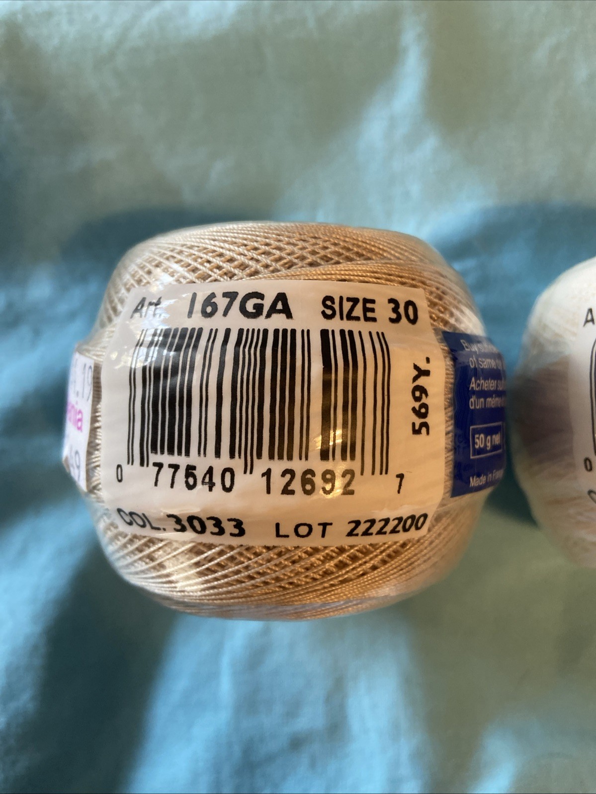 2 DMC Cebelia Crochet 167G/A Cotton Size 30 20 Blanc/3033