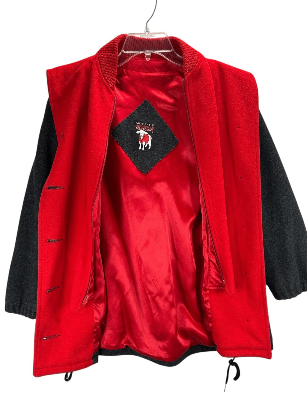 VTG Authentic Mackintosh Red Charcoal Wool Hooded Vest Coat Layered 80s 90s 12