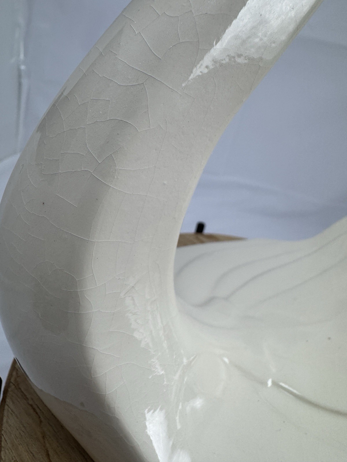 VTG 88 Handmade Ceramic White Swan Washcloth Towel Holder Bathroom MCM Signed