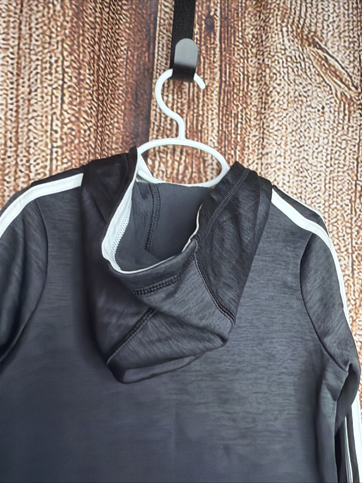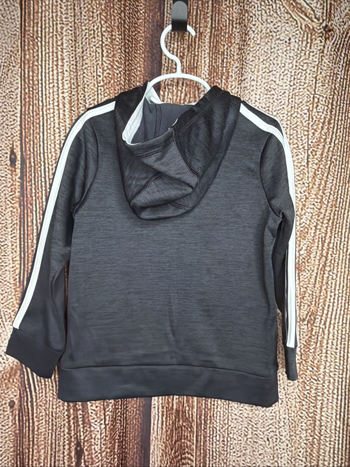 как выглядит Adidas Track Jacket Full Zip Hoodie White Stripes Heather Gray Youth Kids Size 5 фото