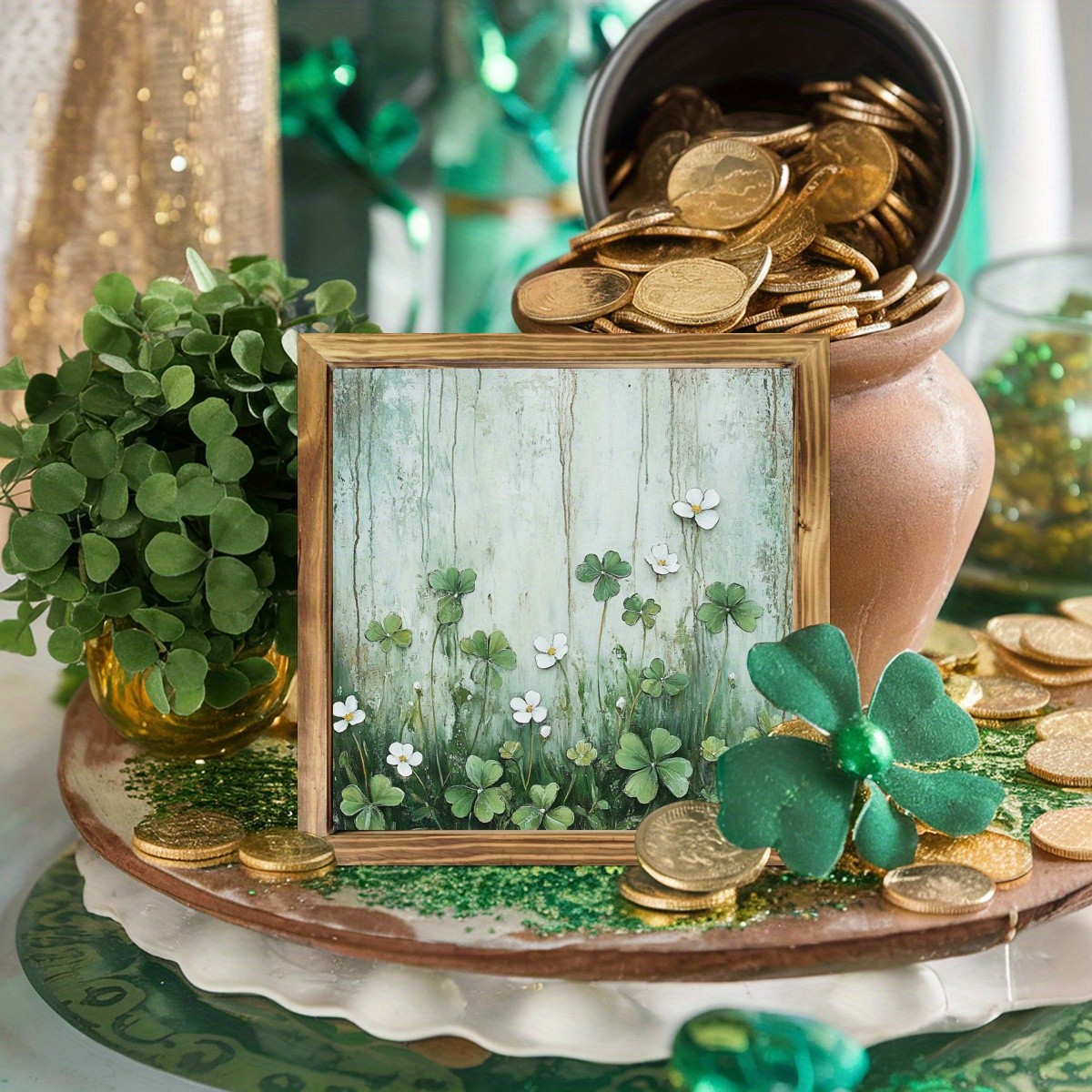 как выглядит Charming St Patricks Day Decor Wooden Plaque Clover And Wildflower Accent Sign фото