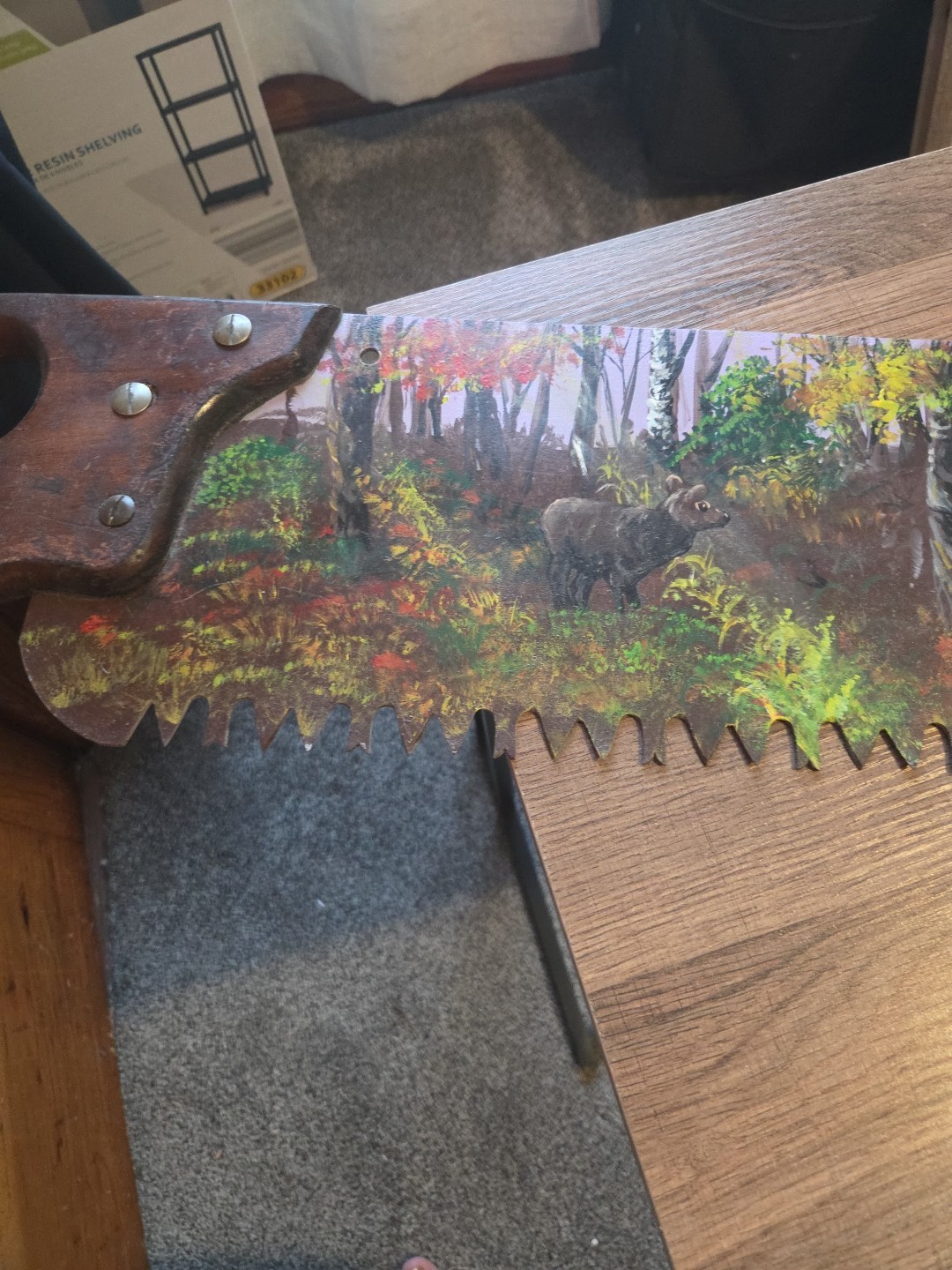 как выглядит Hand Painted Antique/Vtg Cross Cut Saw PA Elk Signed Tonya Dean-Smith фото