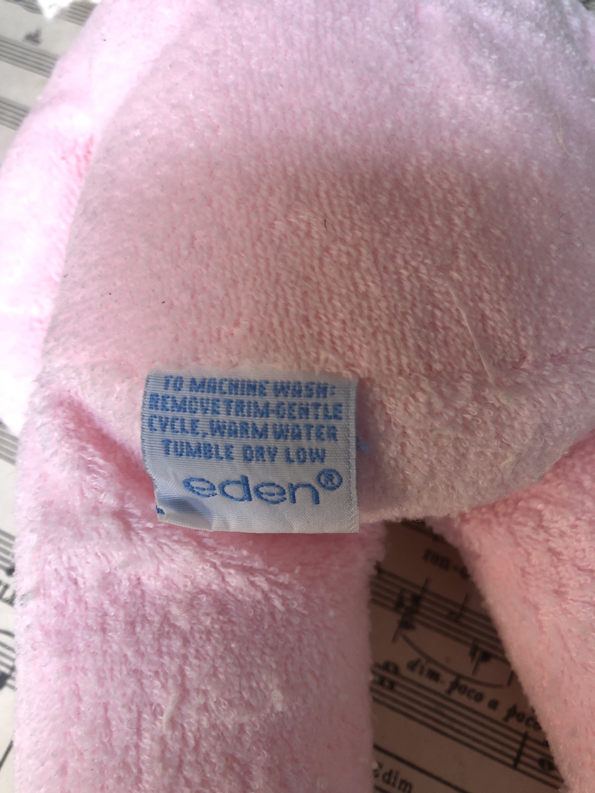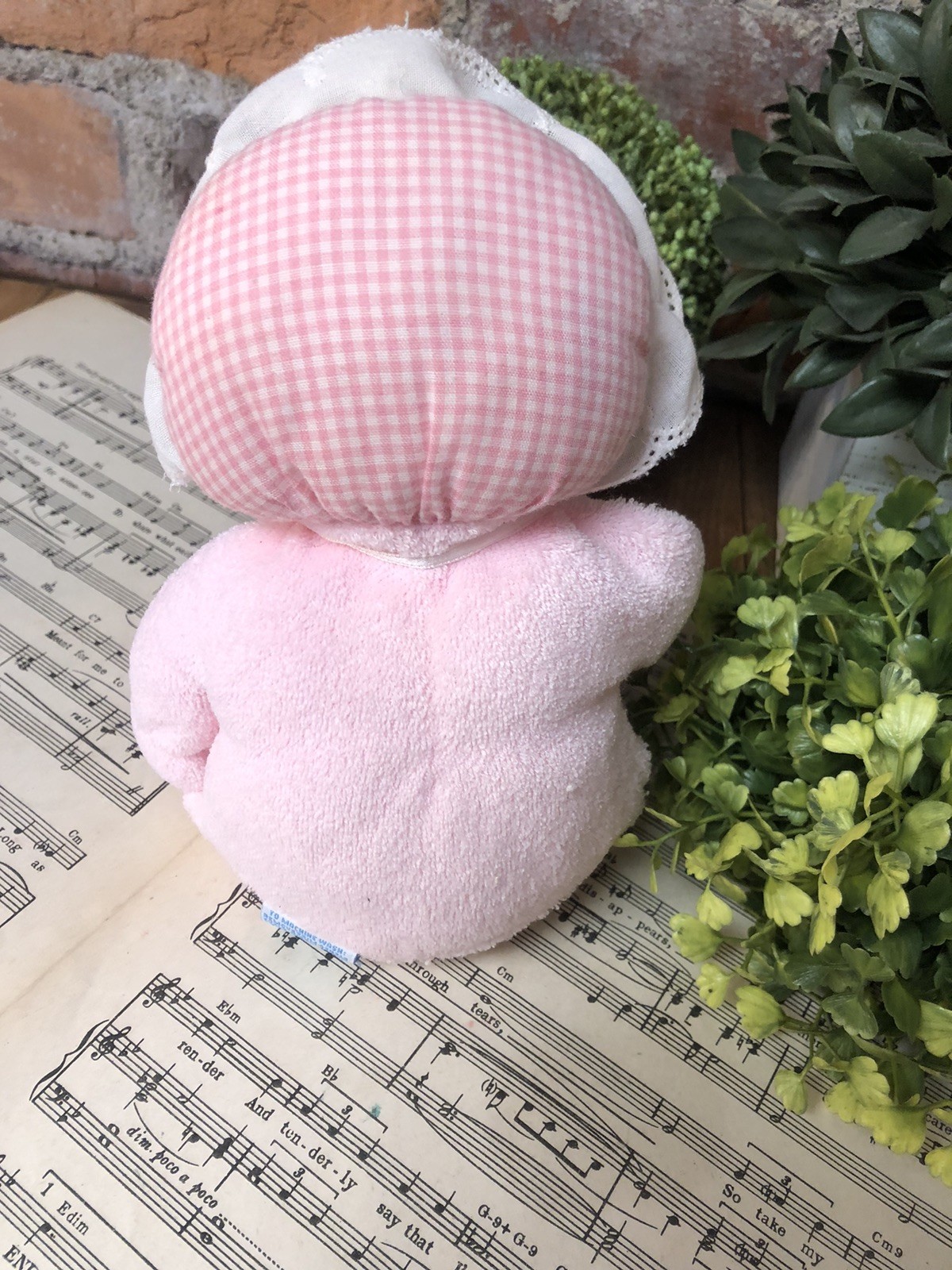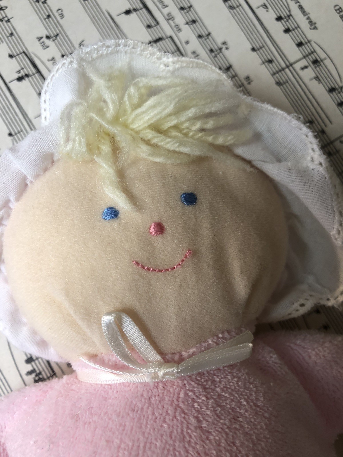 Eden Girl Baby Doll Lovey Pink Terry Cloth Blonde Hair Blue Eyes Gingham Bonnet