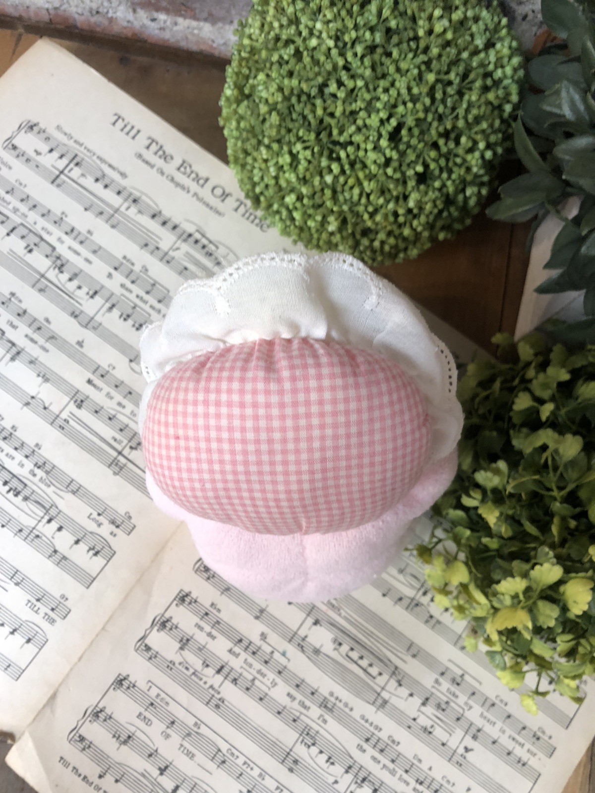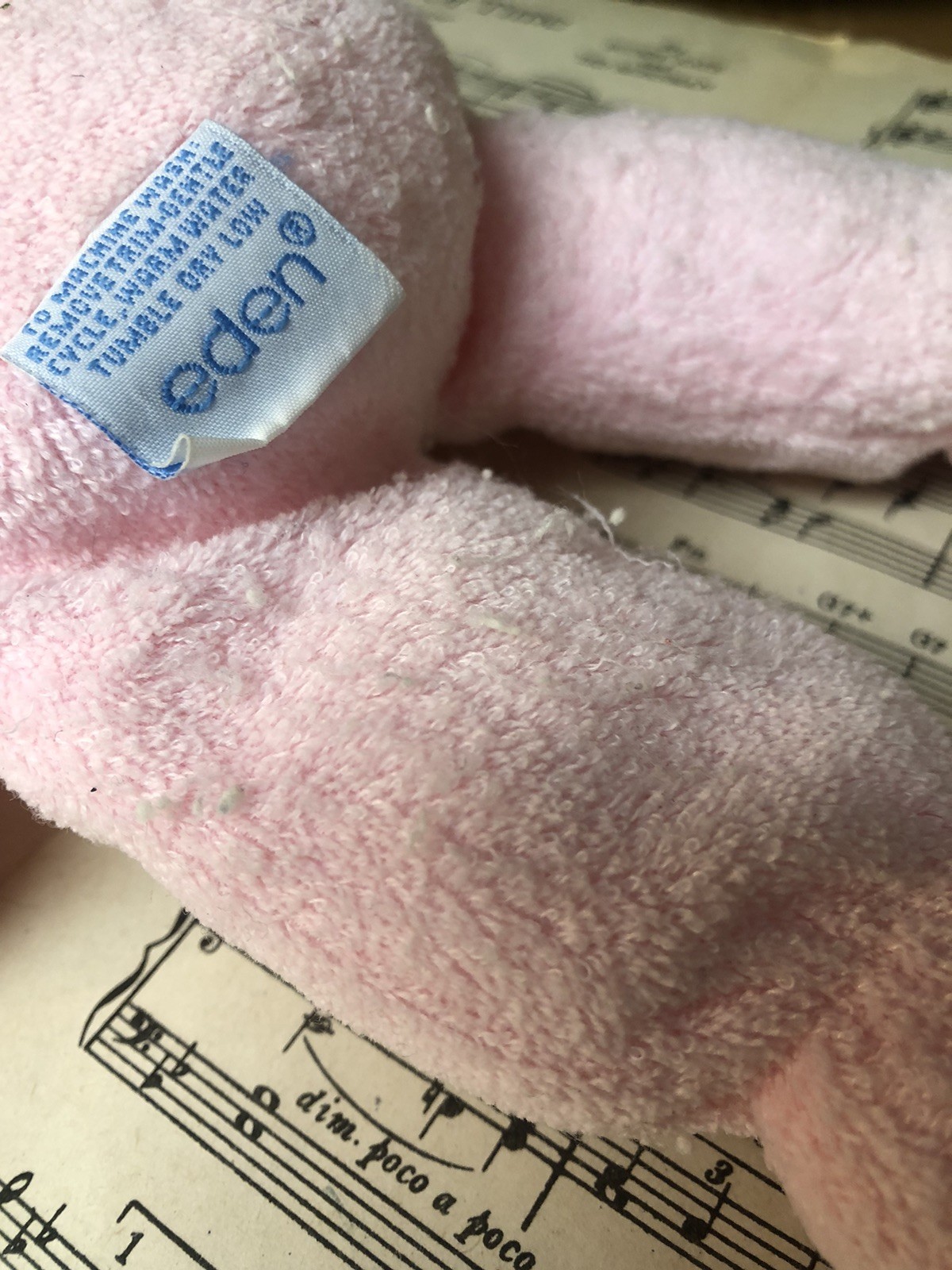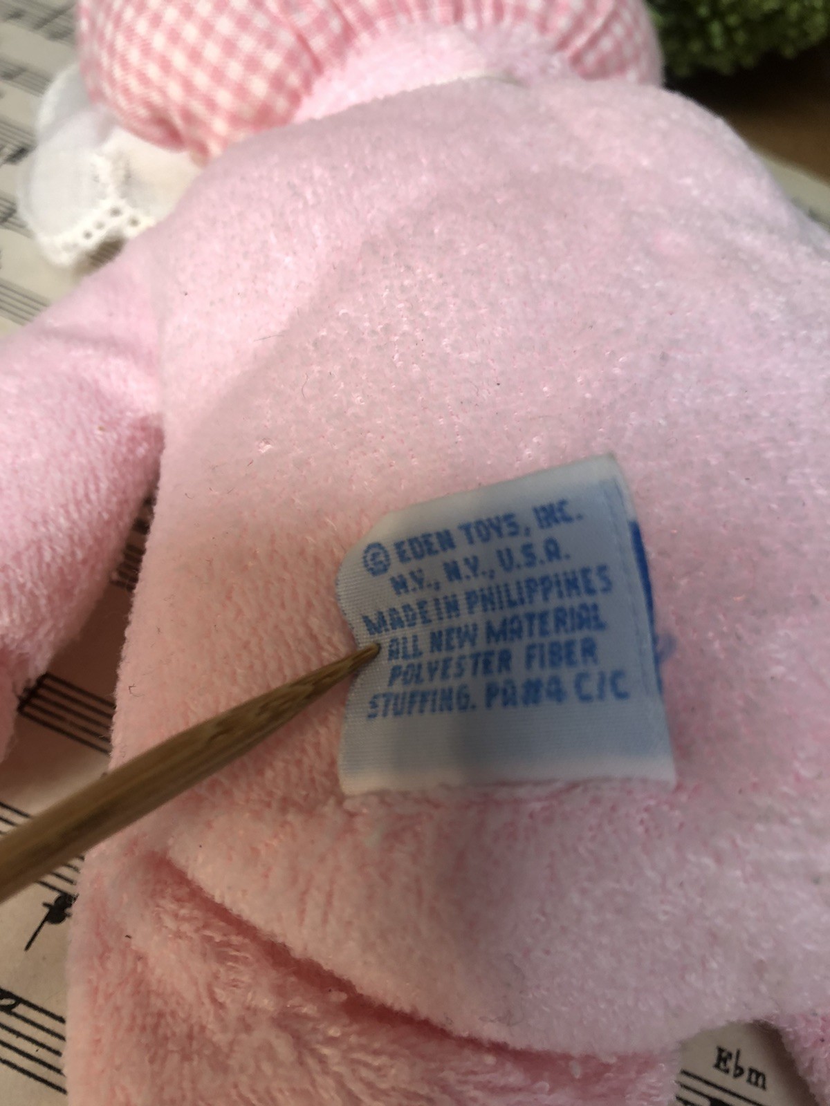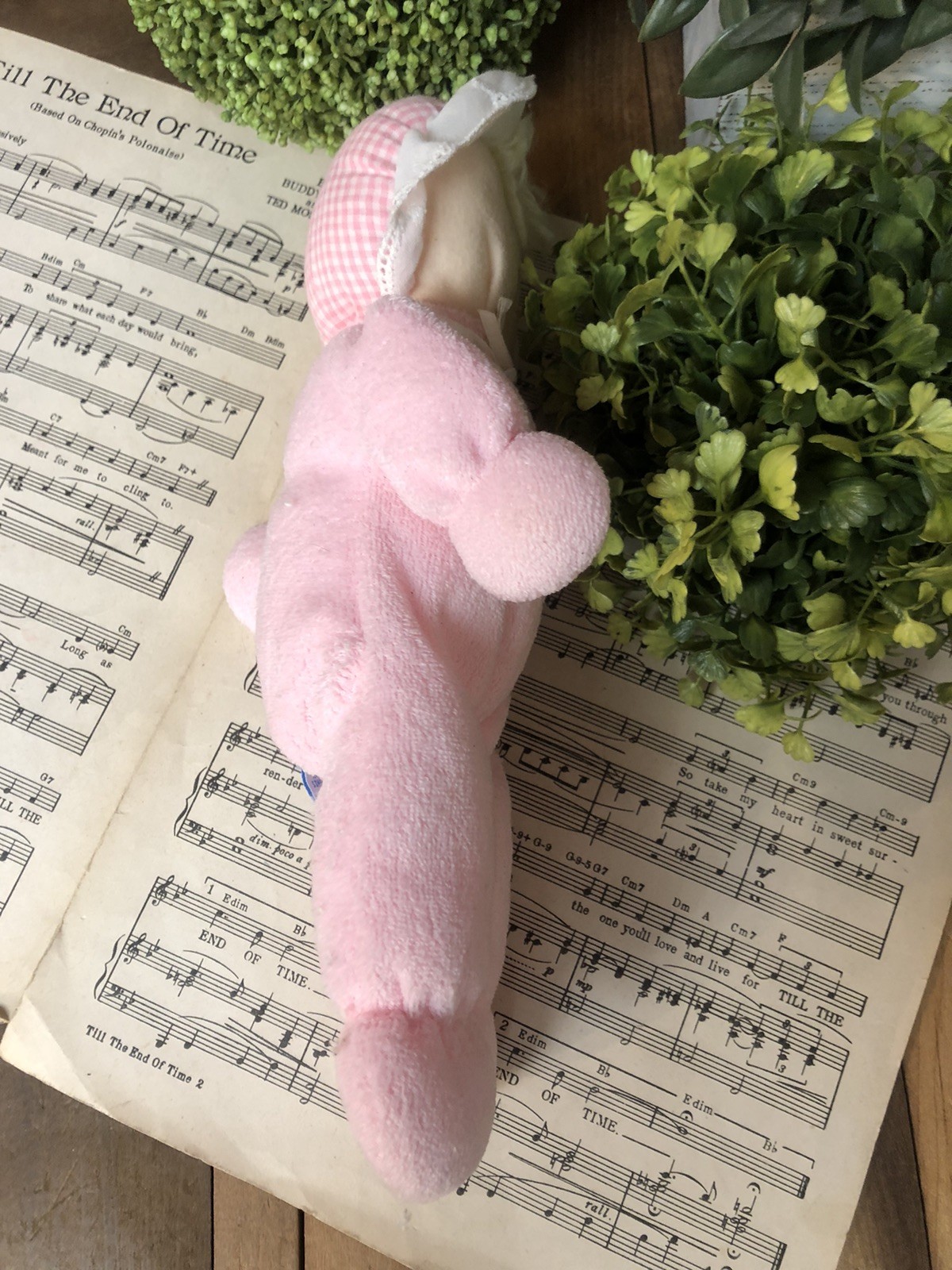 Eden Girl Baby Doll Lovey Pink Terry Cloth Blonde Hair Blue Eyes Gingham Bonnet