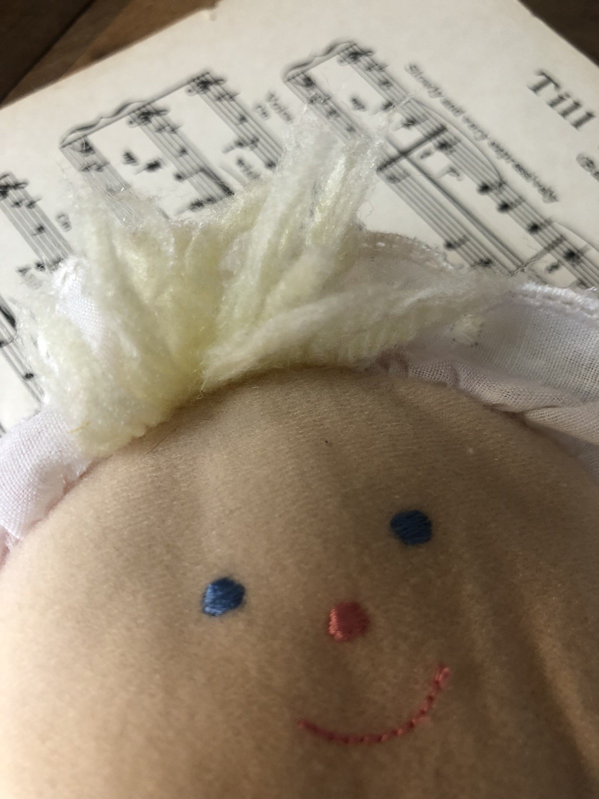 как выглядит Eden Girl Baby Doll Lovey Pink Terry Cloth Blonde Hair Blue Eyes Gingham Bonnet фото