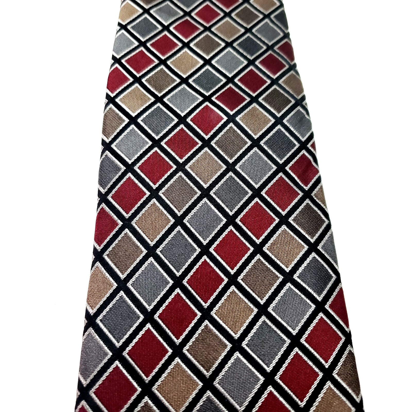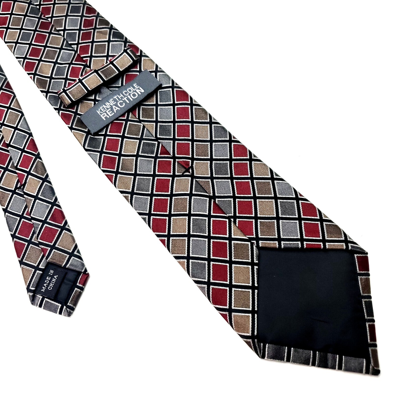 Kenneth Cole Reaction Gray Multi-Colored Silk Tie Woven Check
