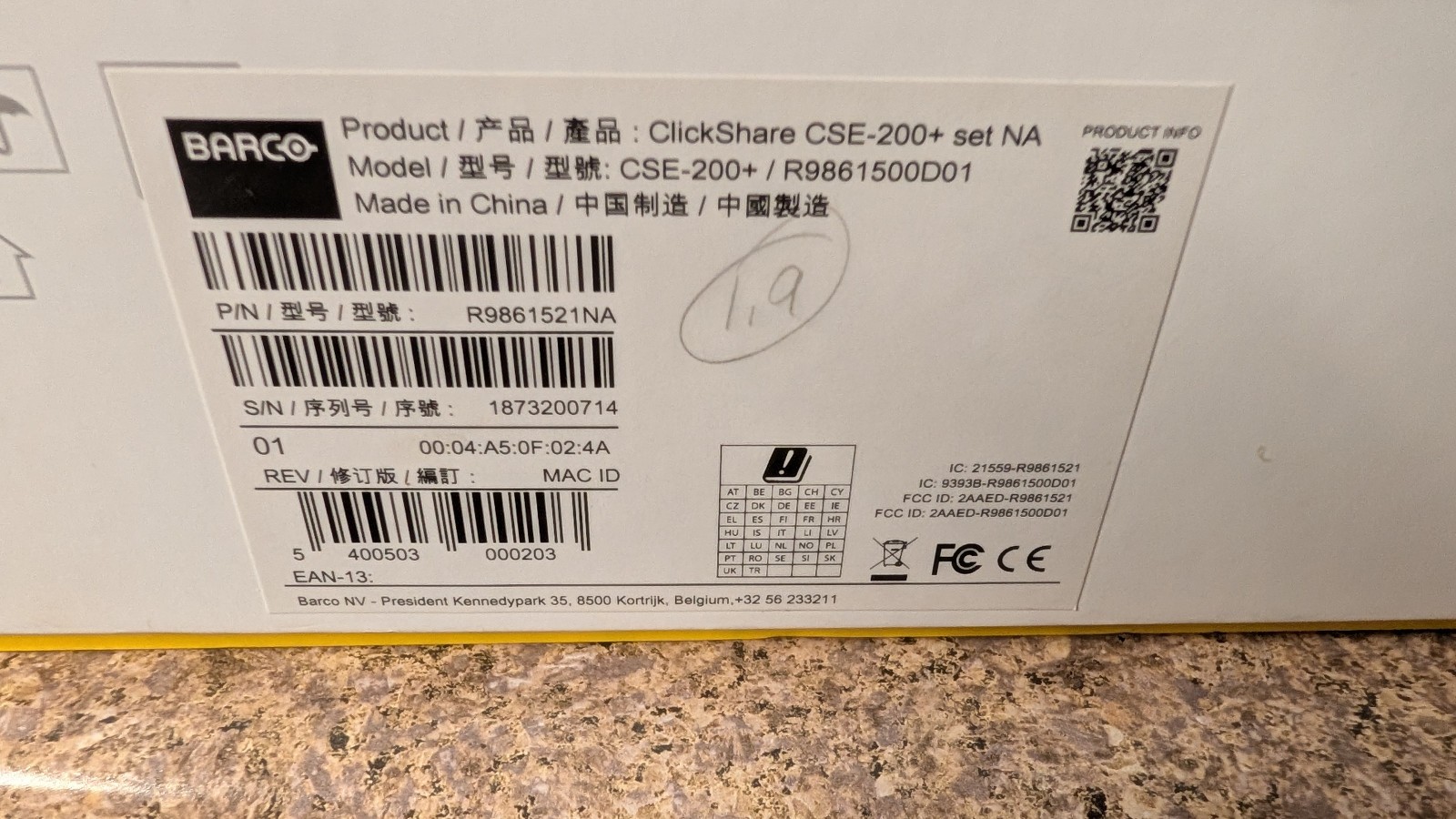 Barco ClickShare CSE-200 Wireless Presentation System, Dealer Demo w/Orig. Box