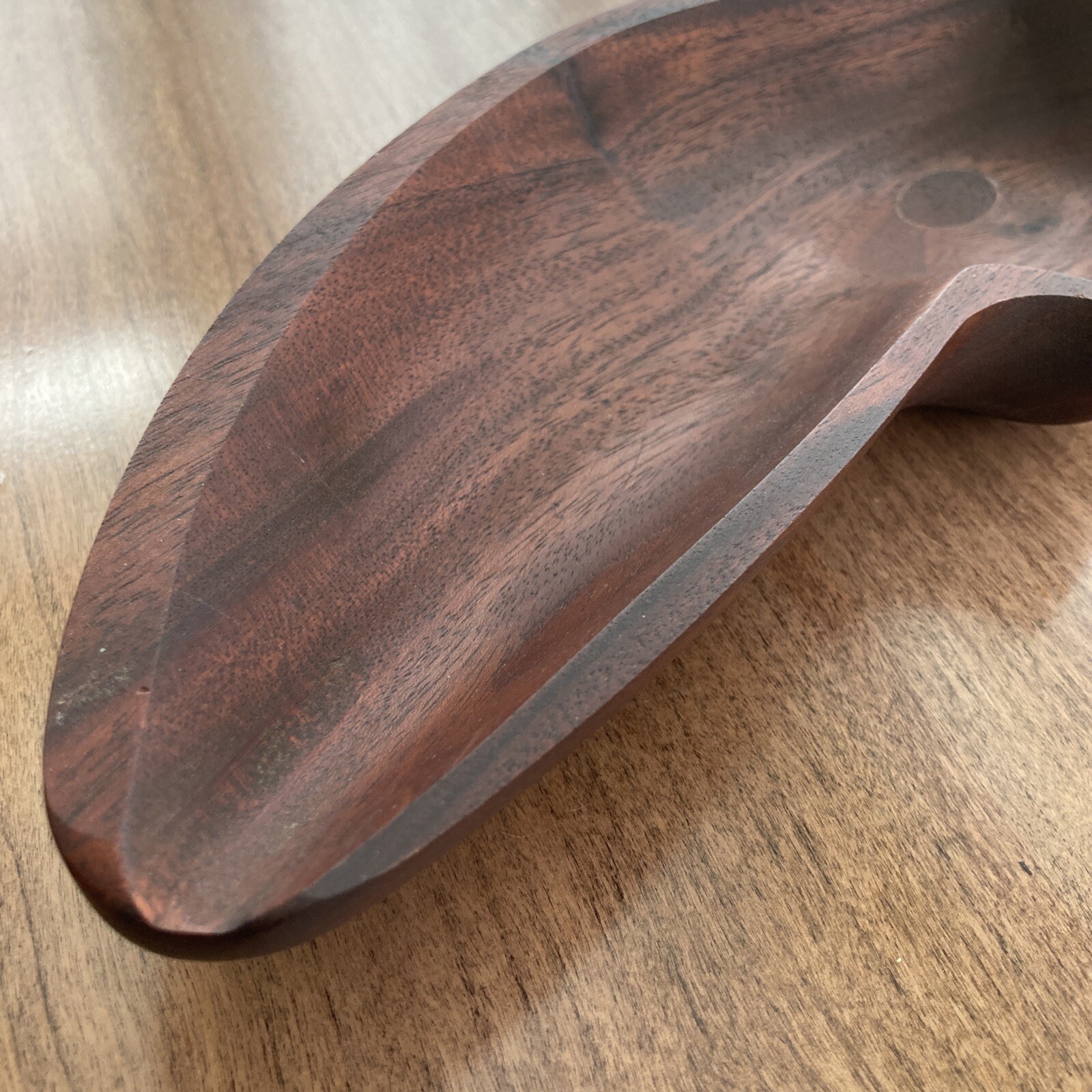 как выглядит Wood Bowl Handmade 11 L x 5 W One of a Kind MCM Unique Shape фото