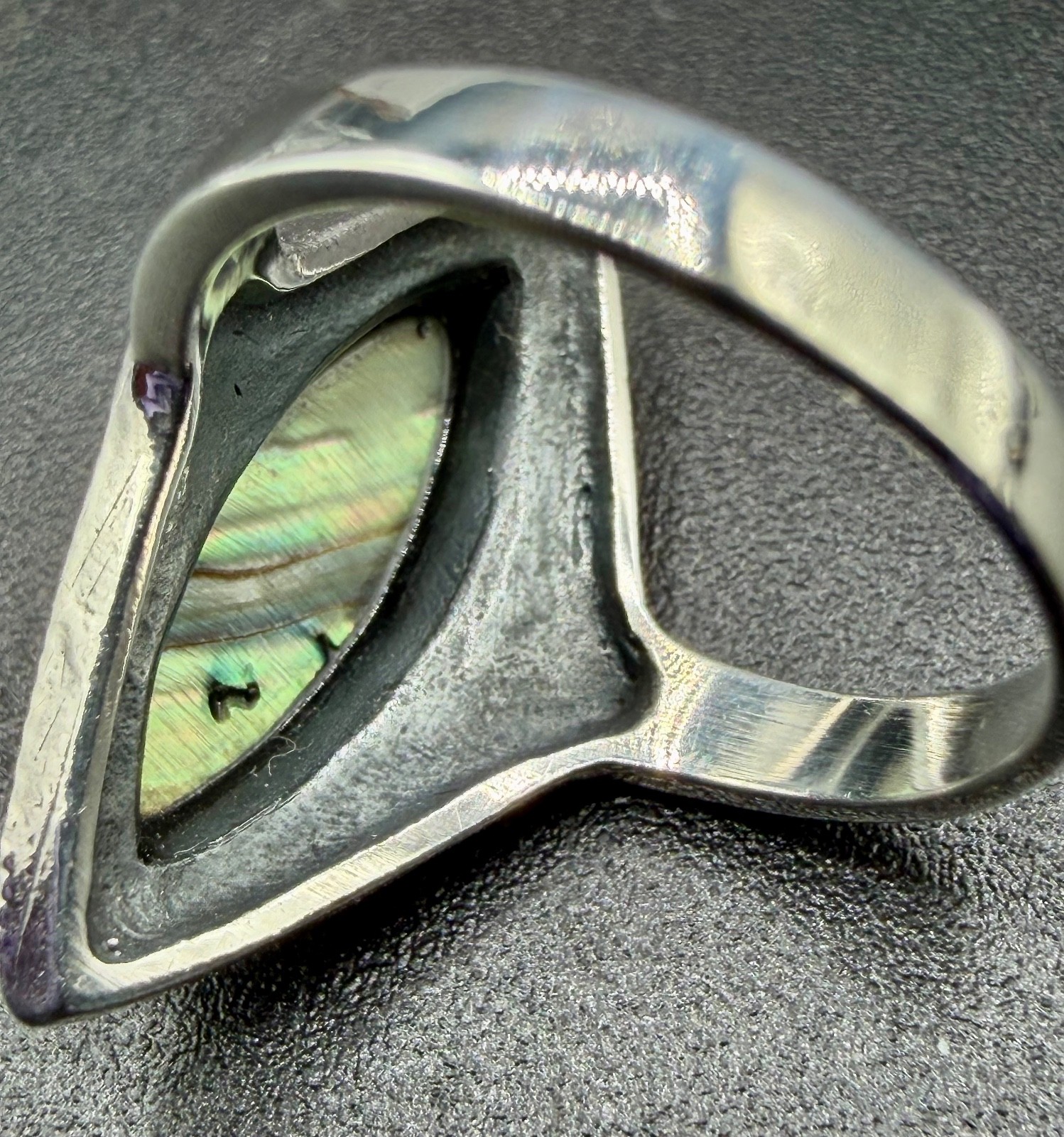 как выглядит VTG Sterling Silver Oval Abalone and Marcasite Ring 925 Size 6.5 Thailand 4.6g фото