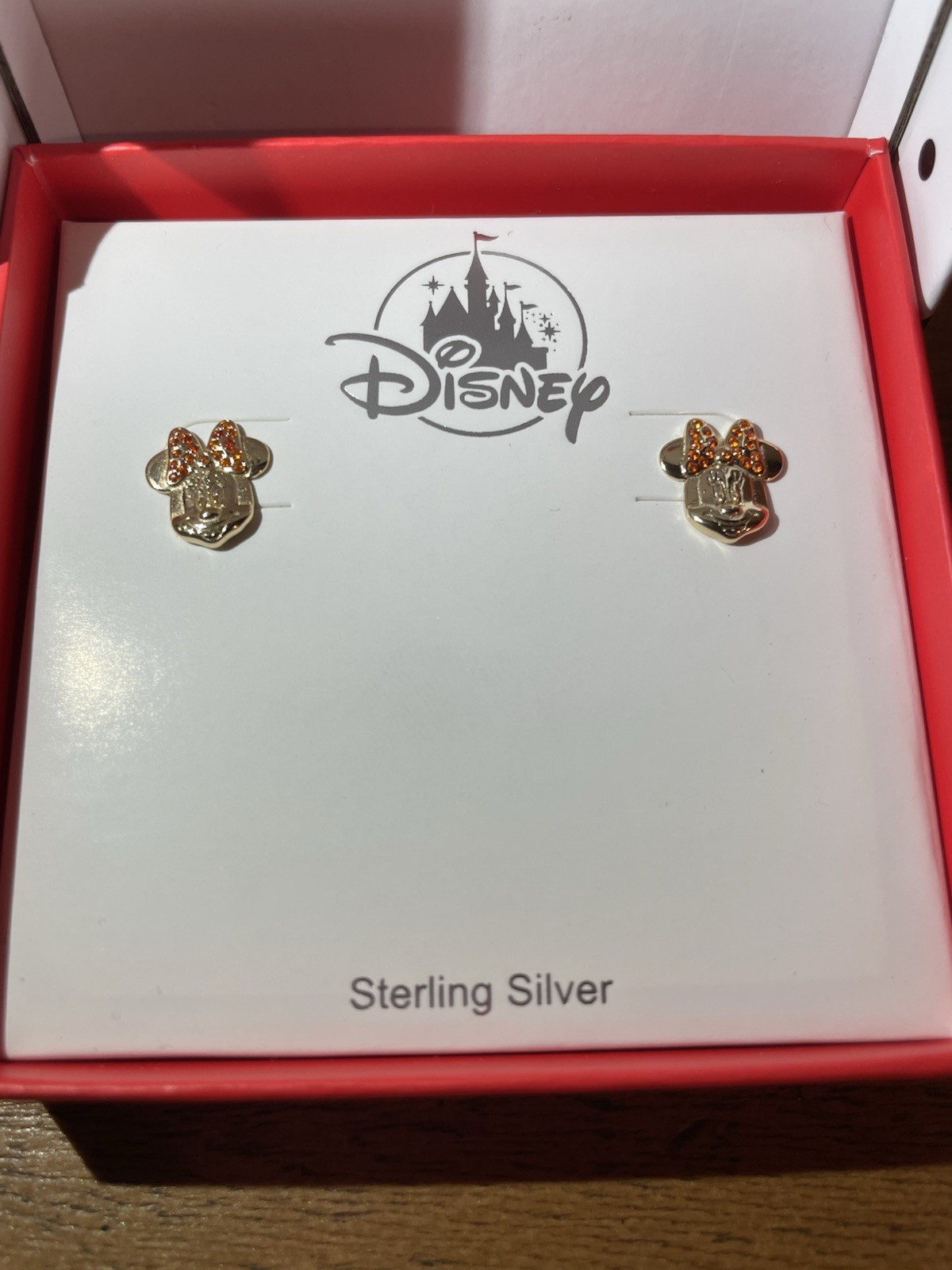 как выглядит Disney Minnie Mouse Sterling Silver Gold Tone Stud Earrings New in Box фото