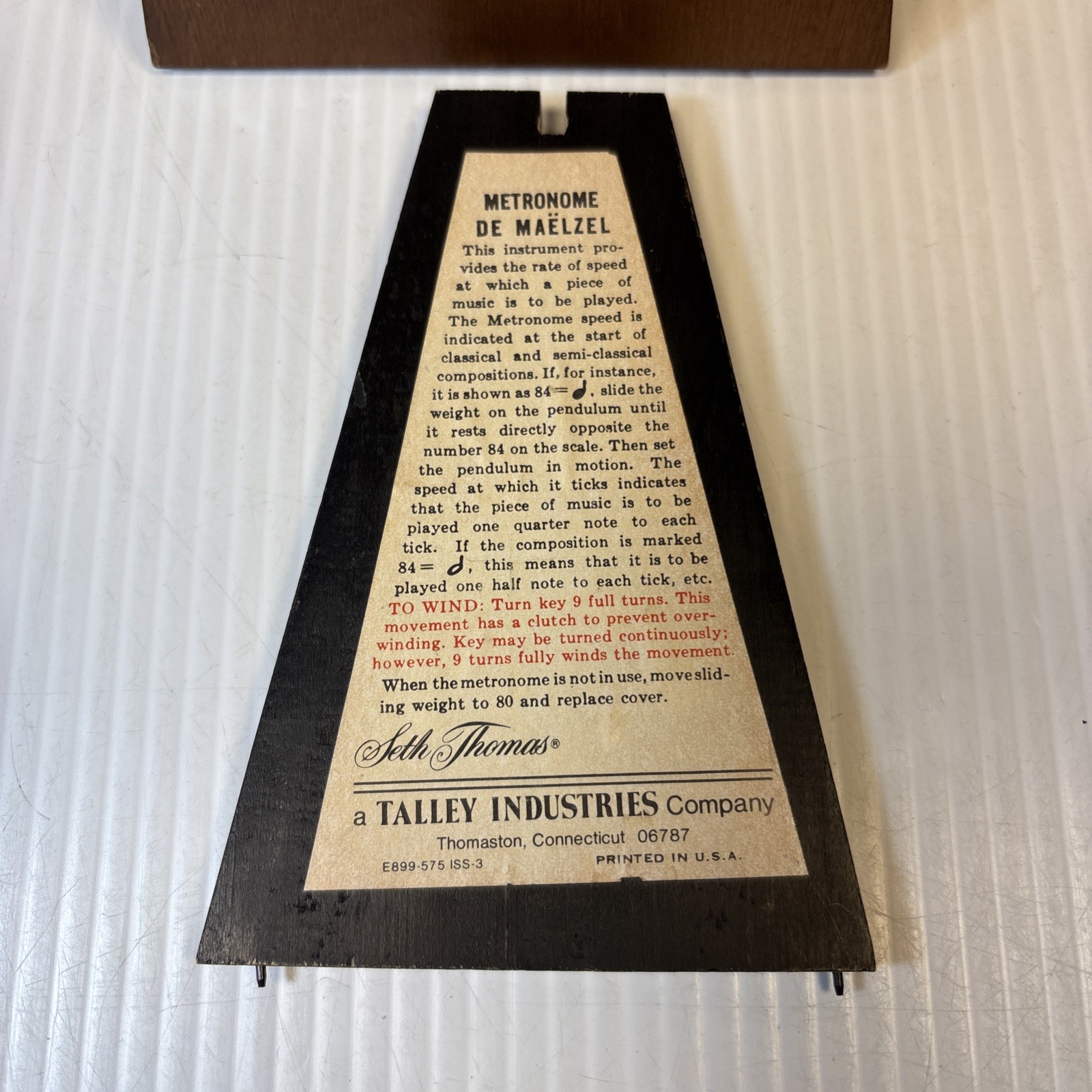 Seth Thomas de Maelzel Metronome Wood Pyramid Tempo Music Beat Works