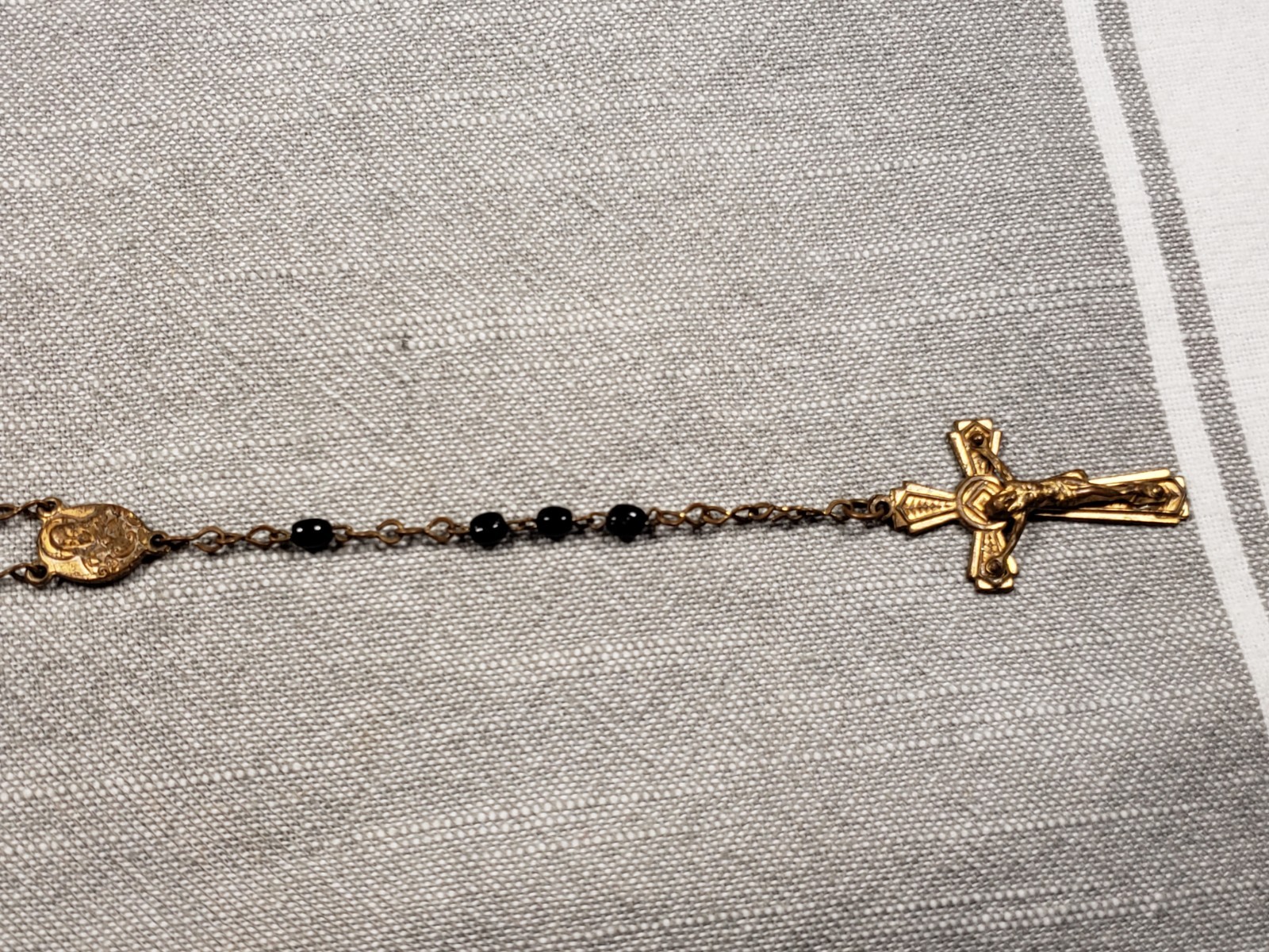 • Beautiful Rosary Goldtone Crucifix Black Beads Religious Christian Gift C15