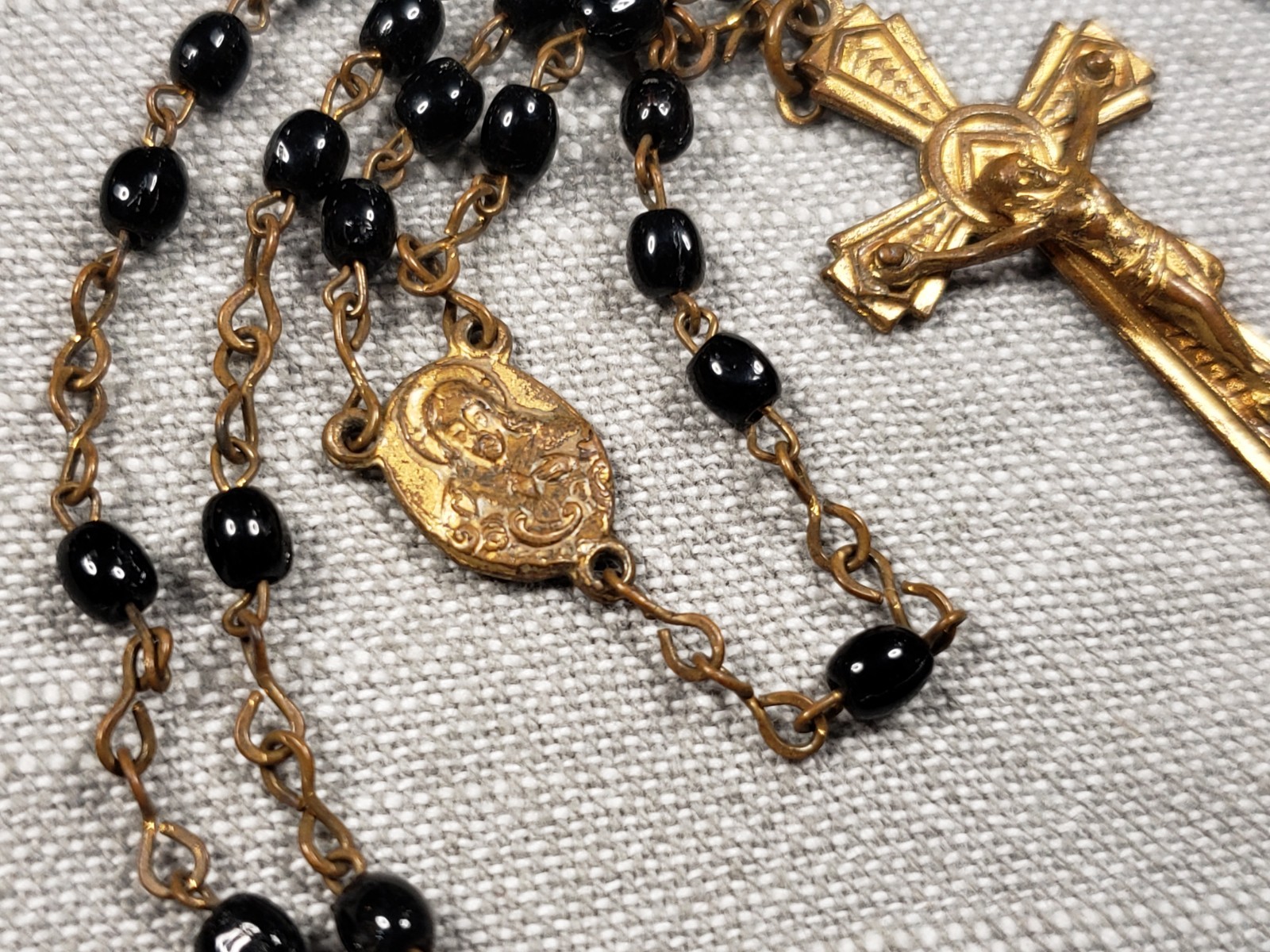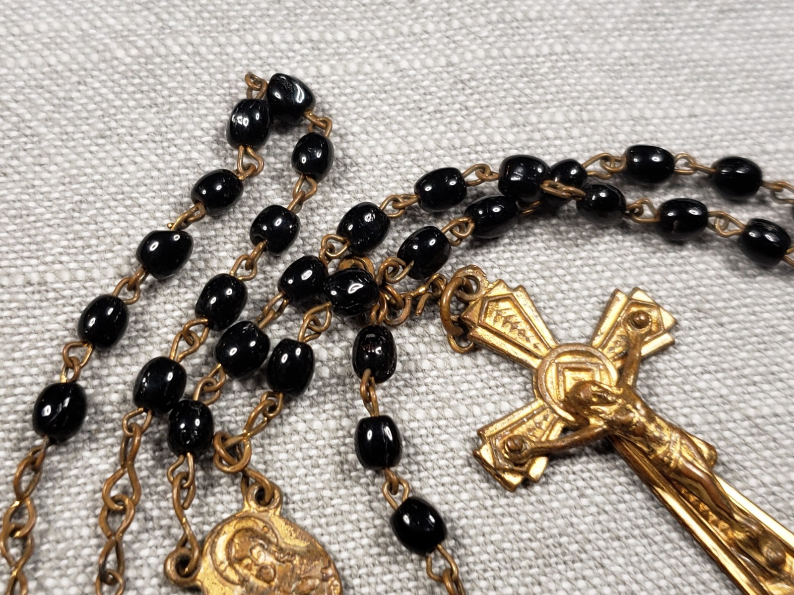 как выглядит Beautiful Rosary Goldtone Crucifix Black Beads Religious Christian Gift C15 фото