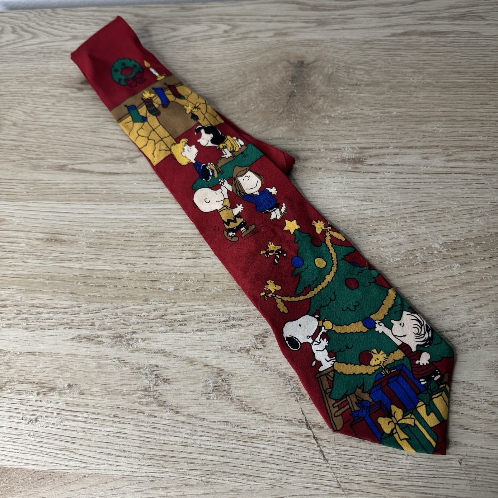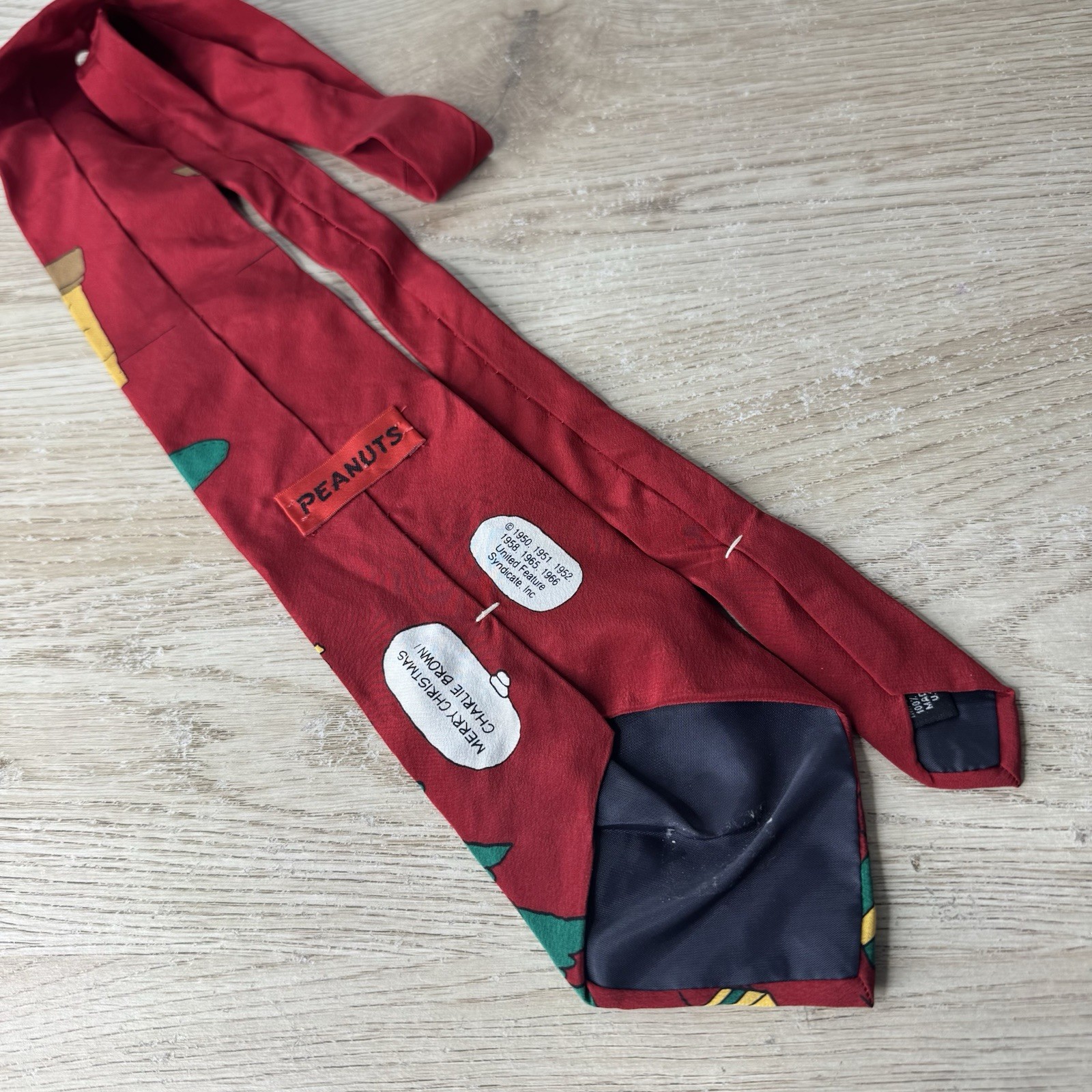как выглядит Peanuts Merry Christmas Charlie Brown 100 Silk Neck Tie Vintage Made In USA фото