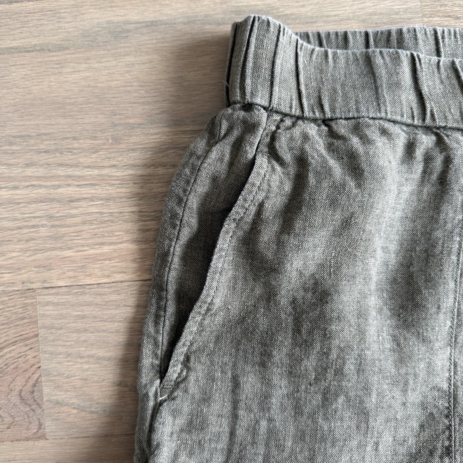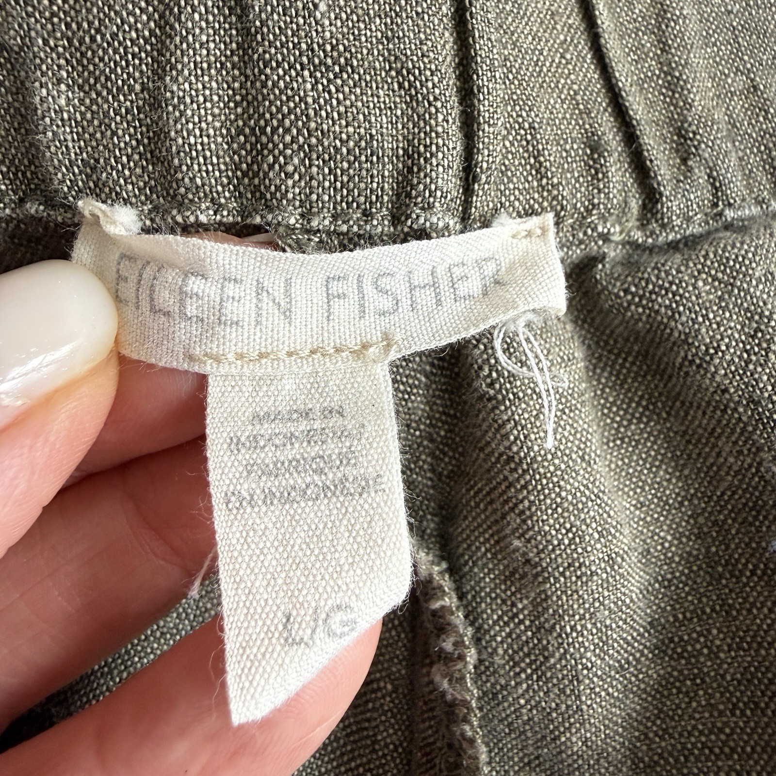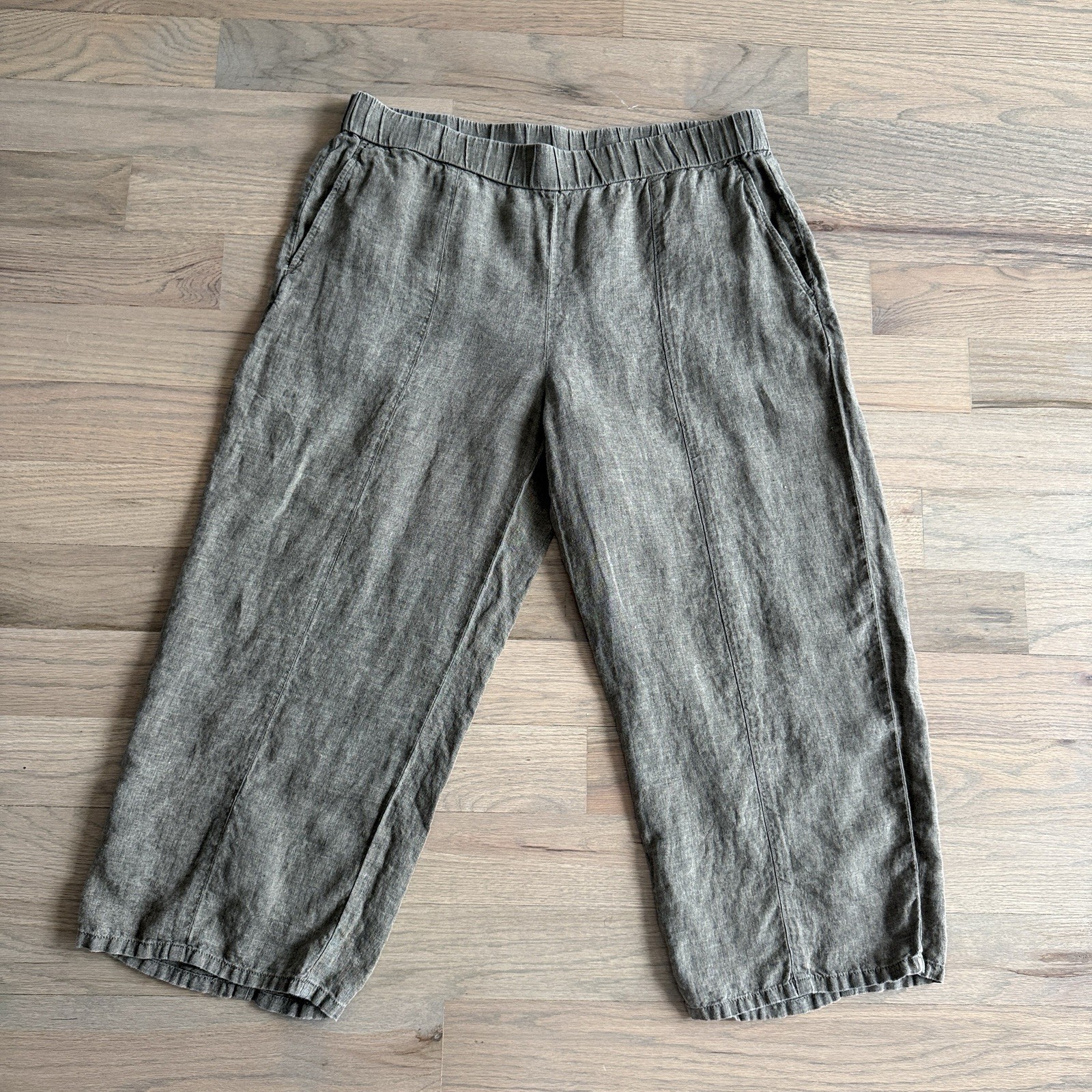 как выглядит Eileen Fisher Womens Washed Organic Linen Delave Lantern Pants Green Tan L фото