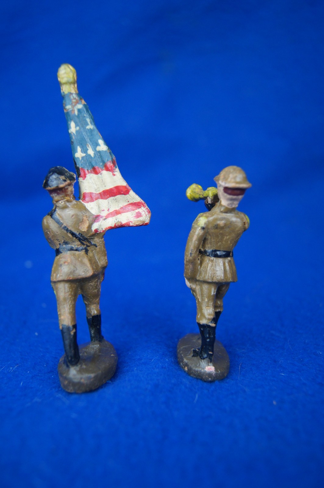 12- Vintage Composite ELASTOLIN: 11 WWI US Infantry Doughboy Soldiers One flag