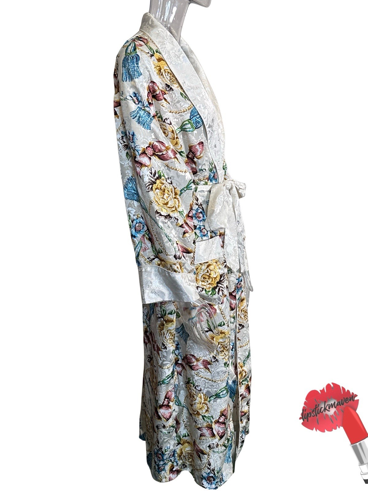 VTG Victoria's Secret Robe Medium / Large White Floral ASO The Nanny Fran Fine