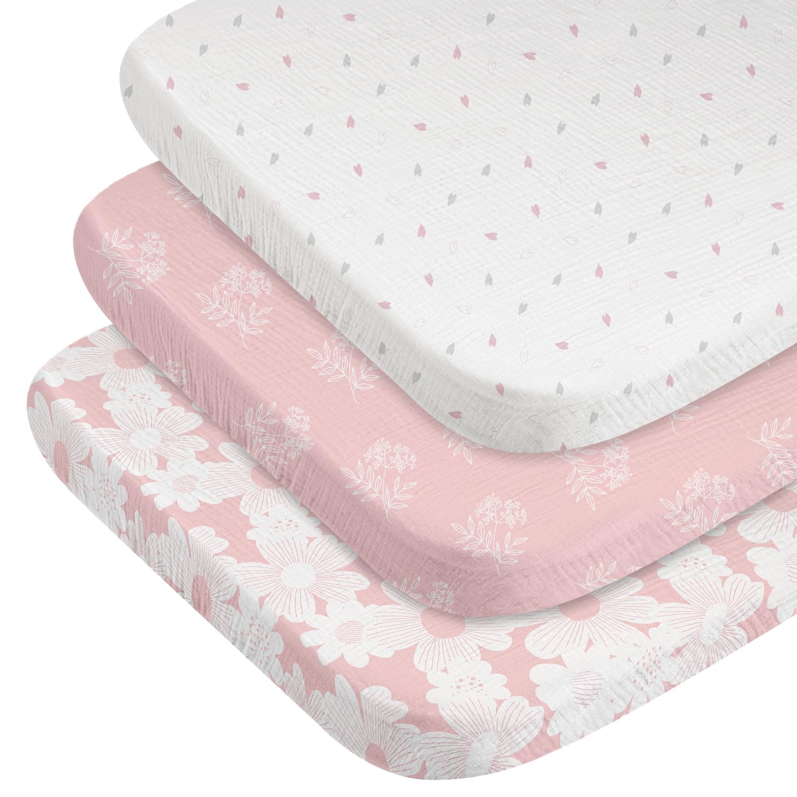 как выглядит Muslin Mini Crib Sheets 3 Pack, Breathable Pack and Play Sheets Fitted Soft C... фото