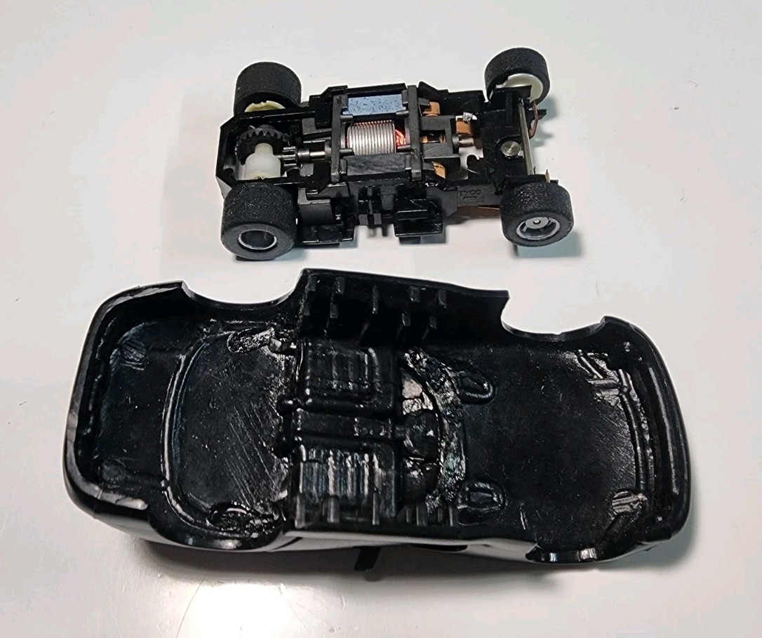 1997 TYCO Black w/Silver Stripes Dodge Viper HO Slot Car 440-X2 Wide Pan Chassis