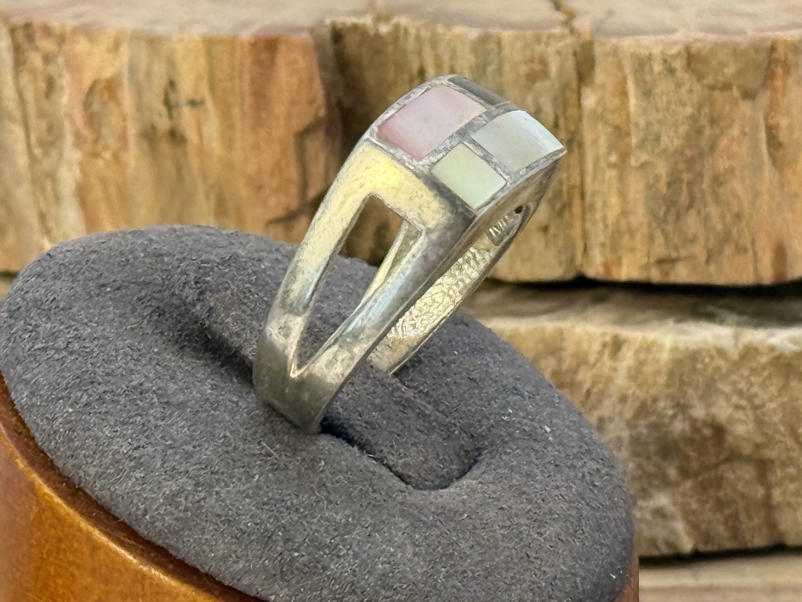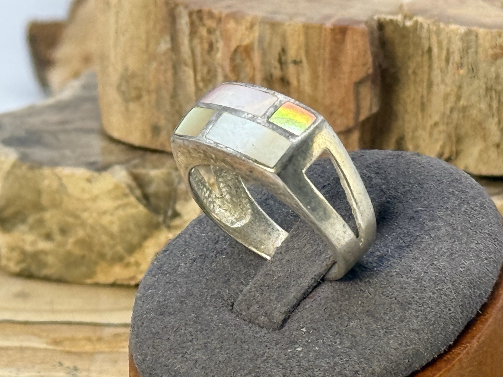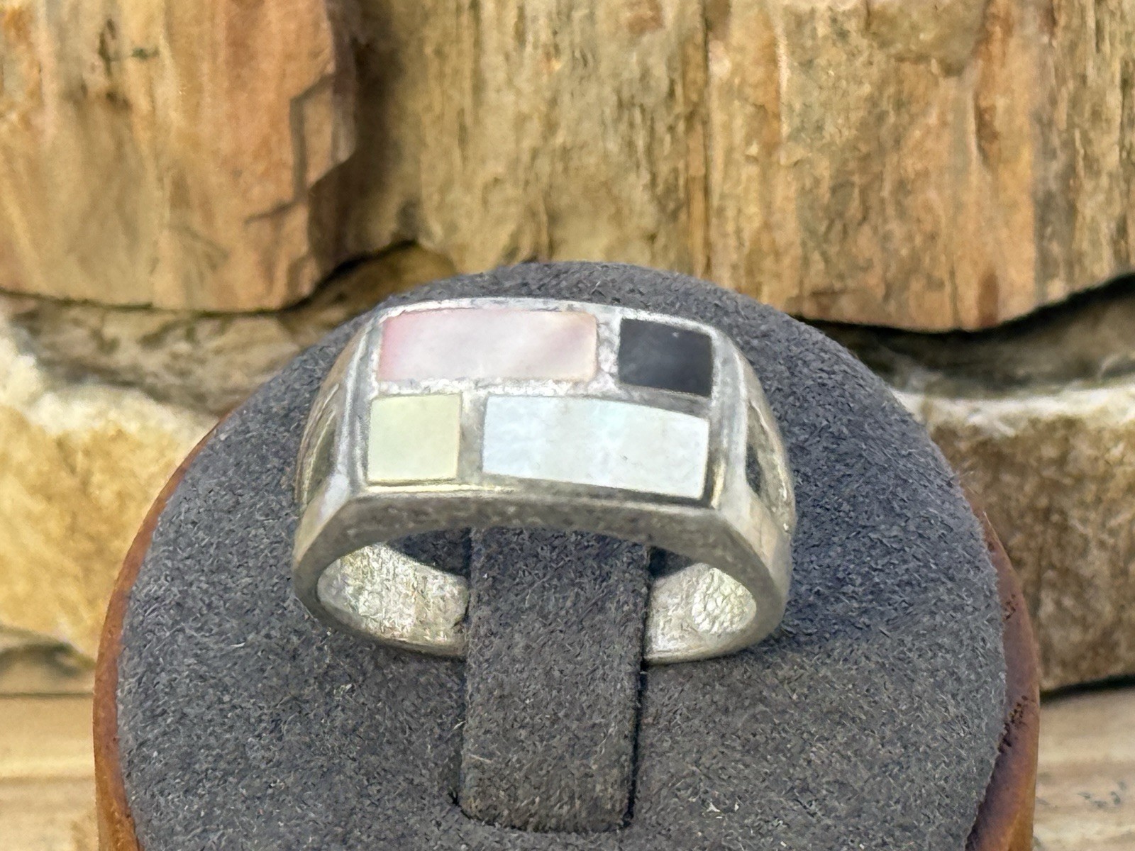 Vintage Artisan Southwest Sterling Mother of Pearl Onyx Ring sz 8.5-333.26