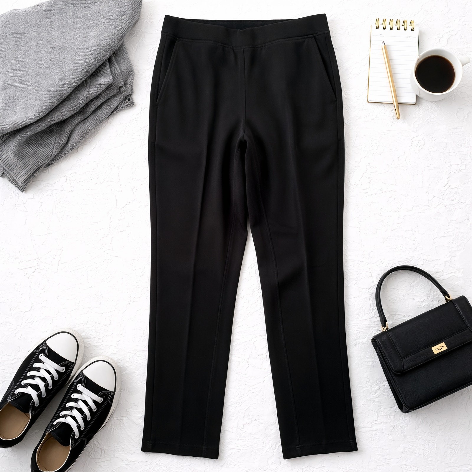 как выглядит Denim Co Active Pants Slim Straight Black XL Pull On Stretch New фото
