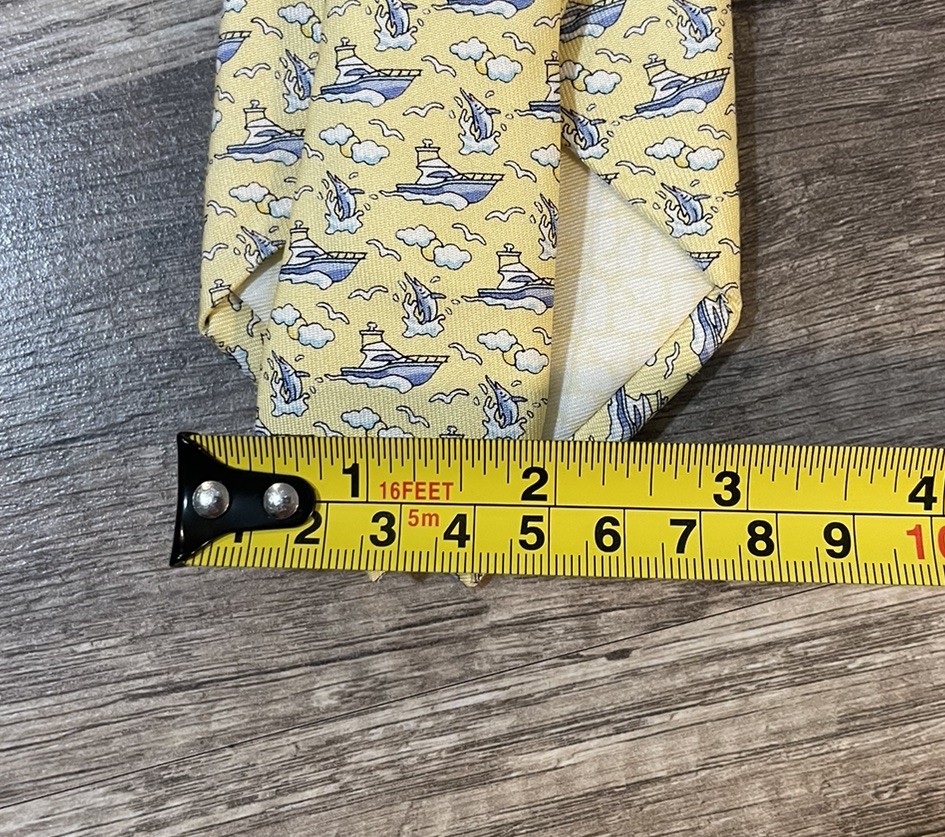как выглядит Vineyard Vines Boats Yellow All Over Print 100 Silk Boys Youth Necktie Tie фото