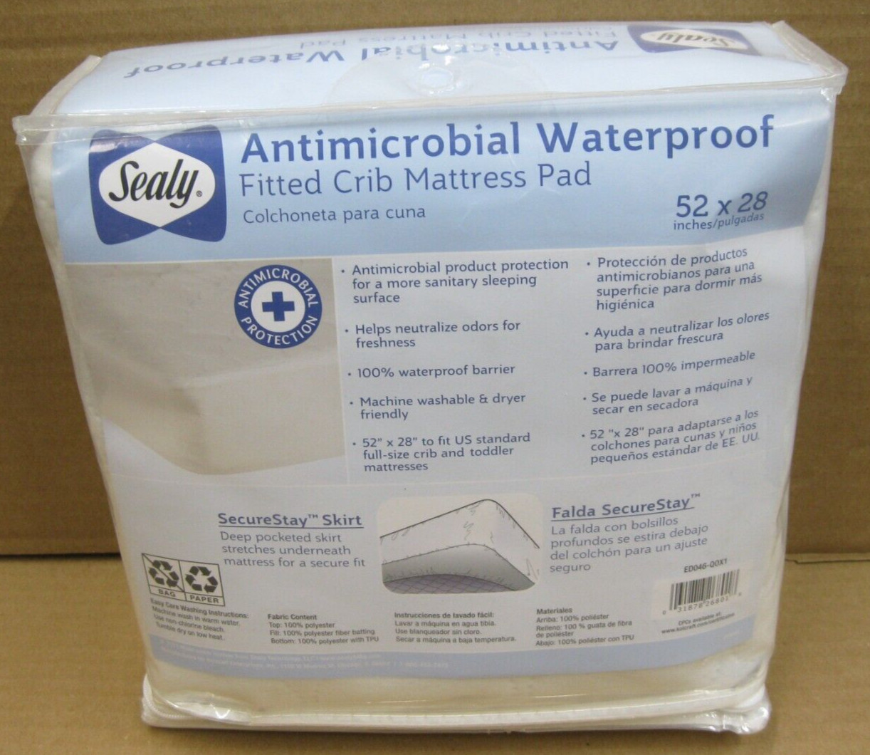 как выглядит SEALY Antimicrobial Waterproof Fitted Crib Mattress pad 52x28 NEW фото