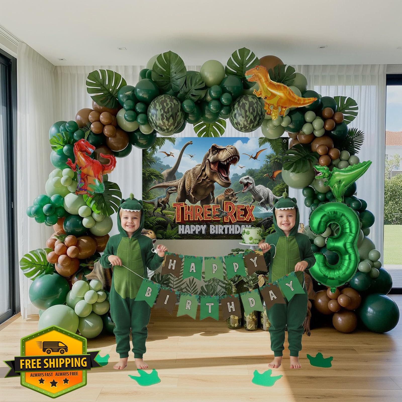 T-Rex Dinosaur Birthday Decor Balloon Arch Banner for Boys 3rd Party