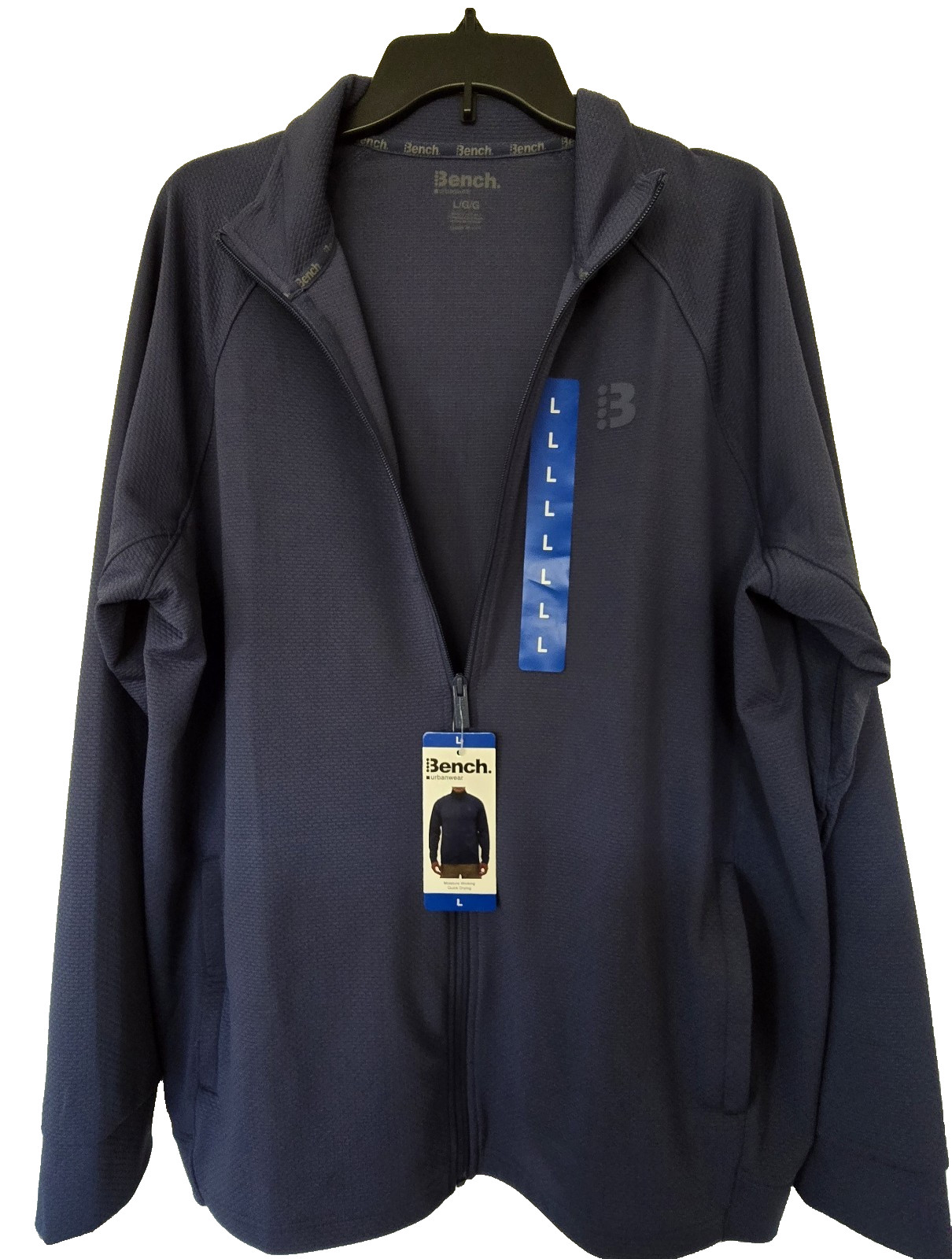 Bench Urbanwear Men's Full Zip Jacket Moisture Wicking Quick Drying Blue Large