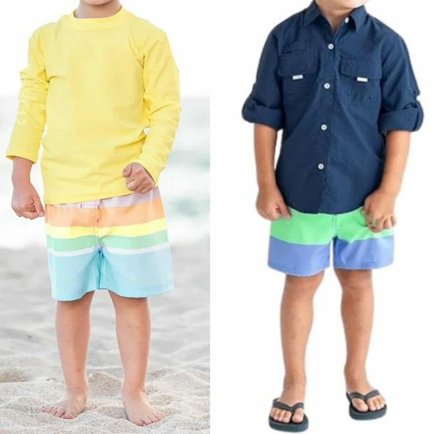 Set of 2 RuggedButts Boys Lined Swim Shorts Trunks Multi Stripe Color Block 6