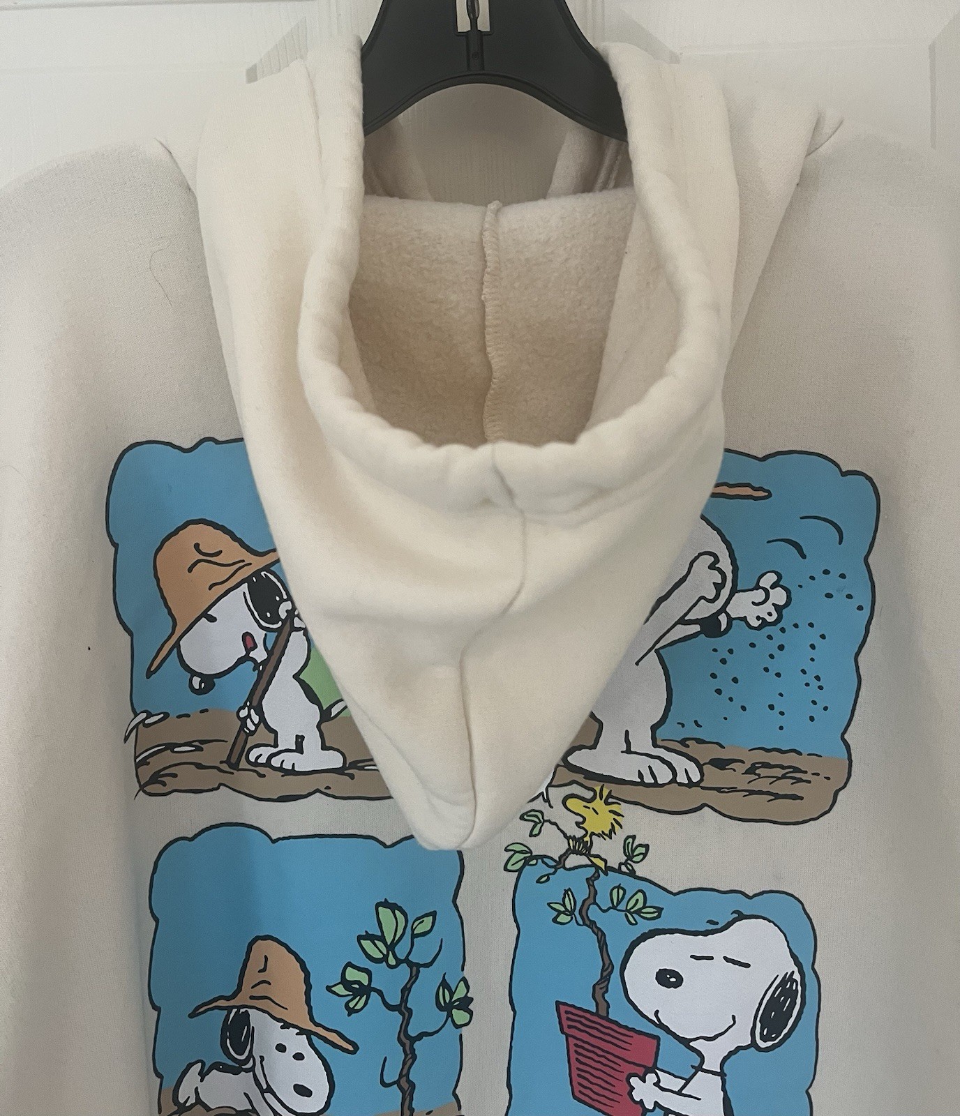 как выглядит Peanuts Snoopy Woodstock Hoodie Cream Beige Gardening Plant Graphic Size XL фото